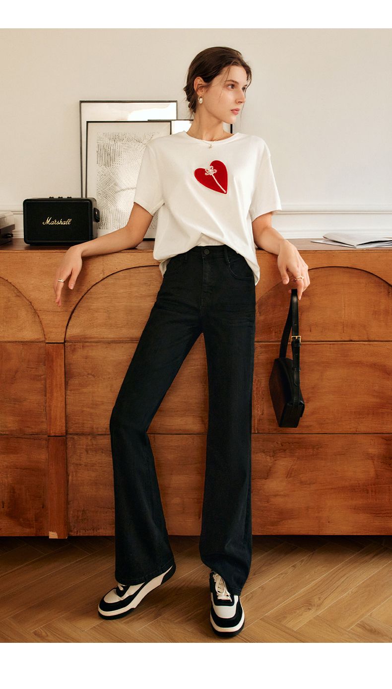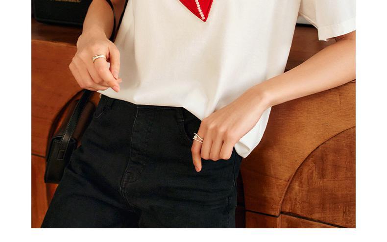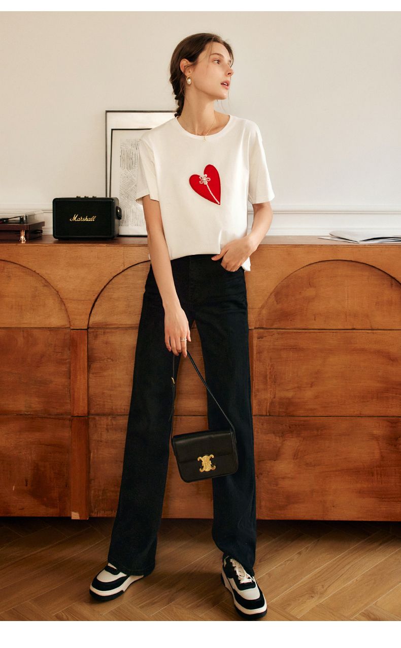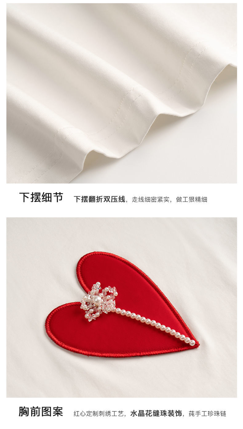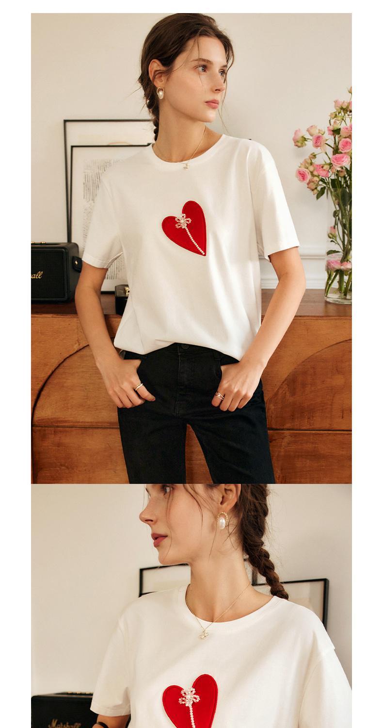 欧芮儿白色T恤女春季2022新款宽松显瘦洋气爱心刺绣短袖休闲上衣
