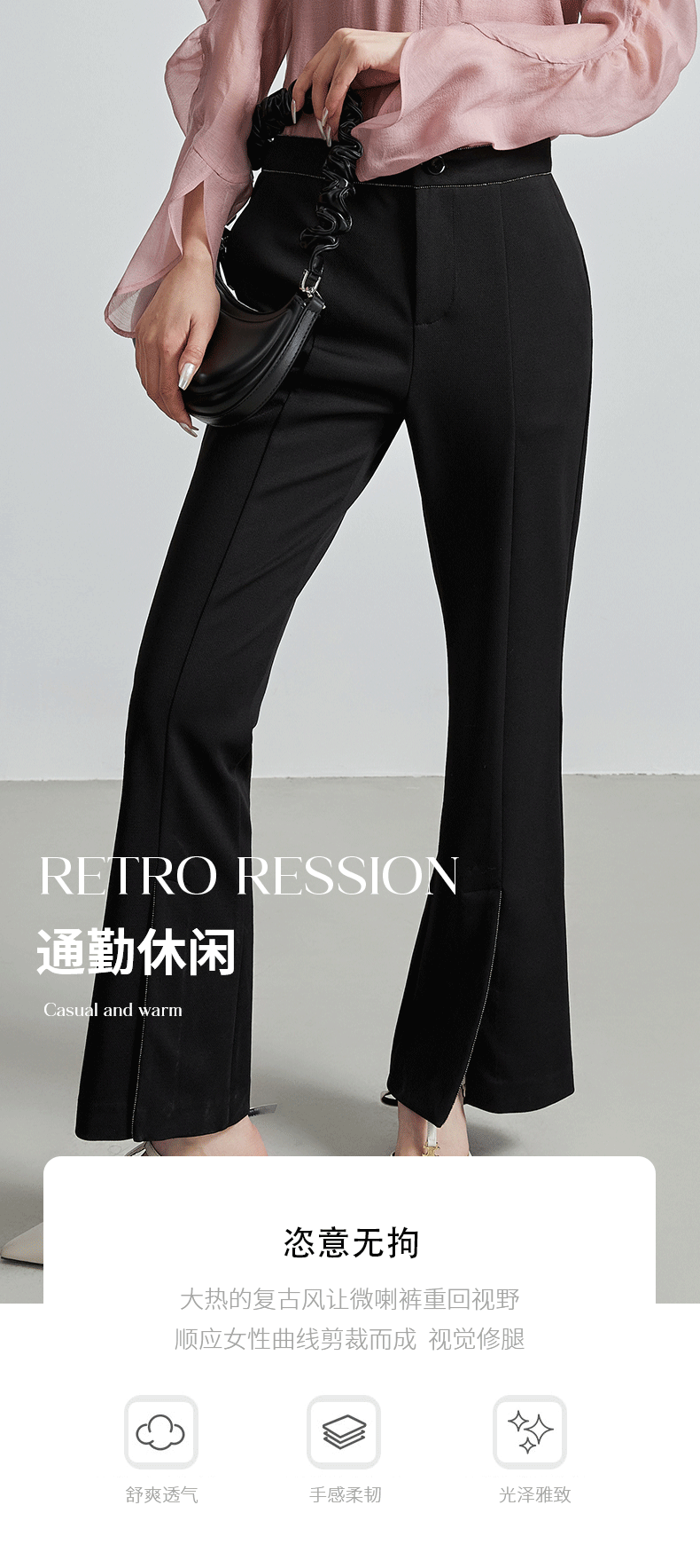 oldcolour春秋季新款设计感微喇小直筒都市通勤休闲裤女P310702A1