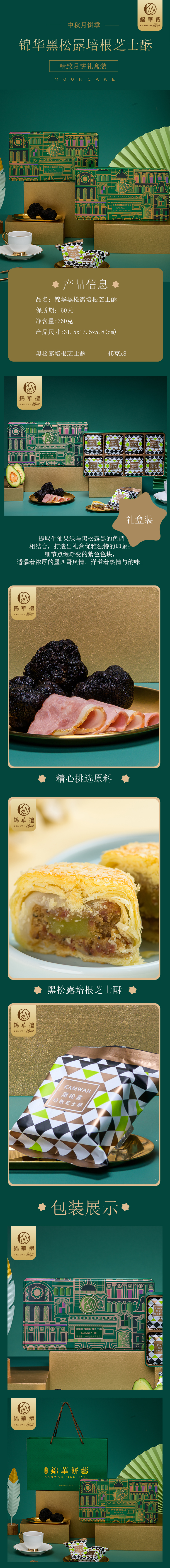 锦华月饼礼盒装黑松露培根芝士酥360g月饼中秋节送礼