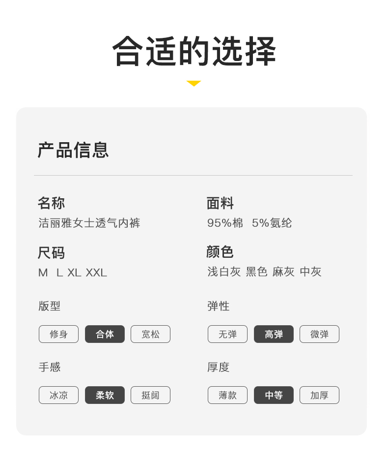 洁丽雅3条装女士内裤中腰纯棉运动休闲双层纯棉内裆三角内裤女