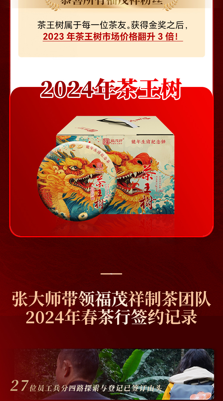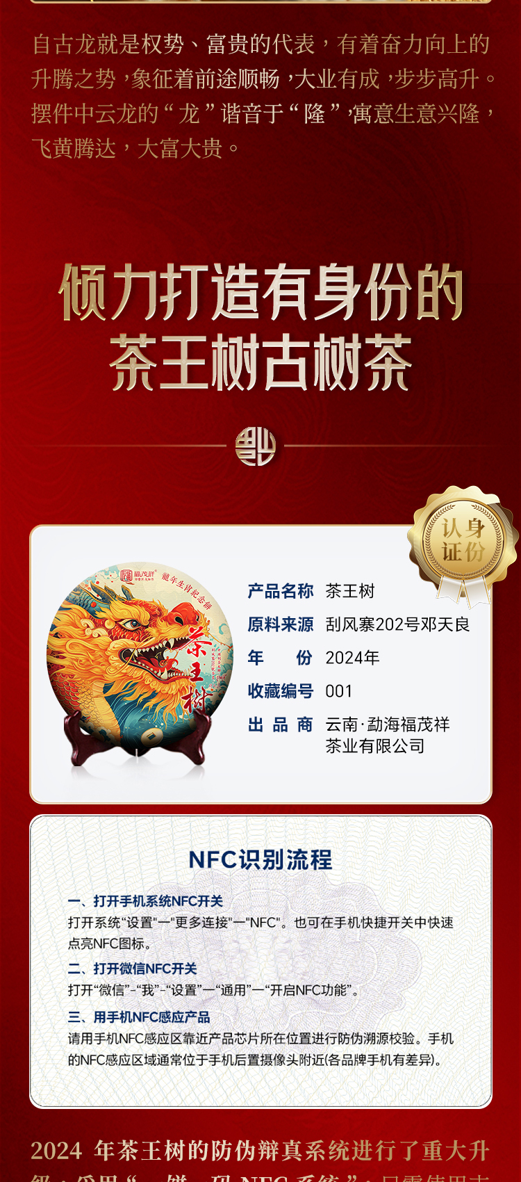【2024年春茶】【茶王树】甲辰龙年生肖饼 身份证NFC溯源 2024年云南易武茶区普洱茶生茶刮风寨茶王树900年纯料古树茶饼357g