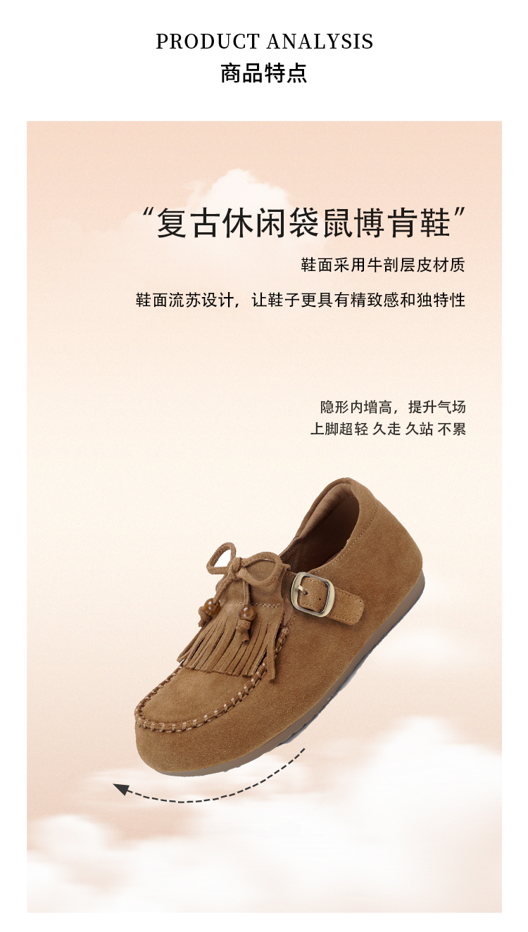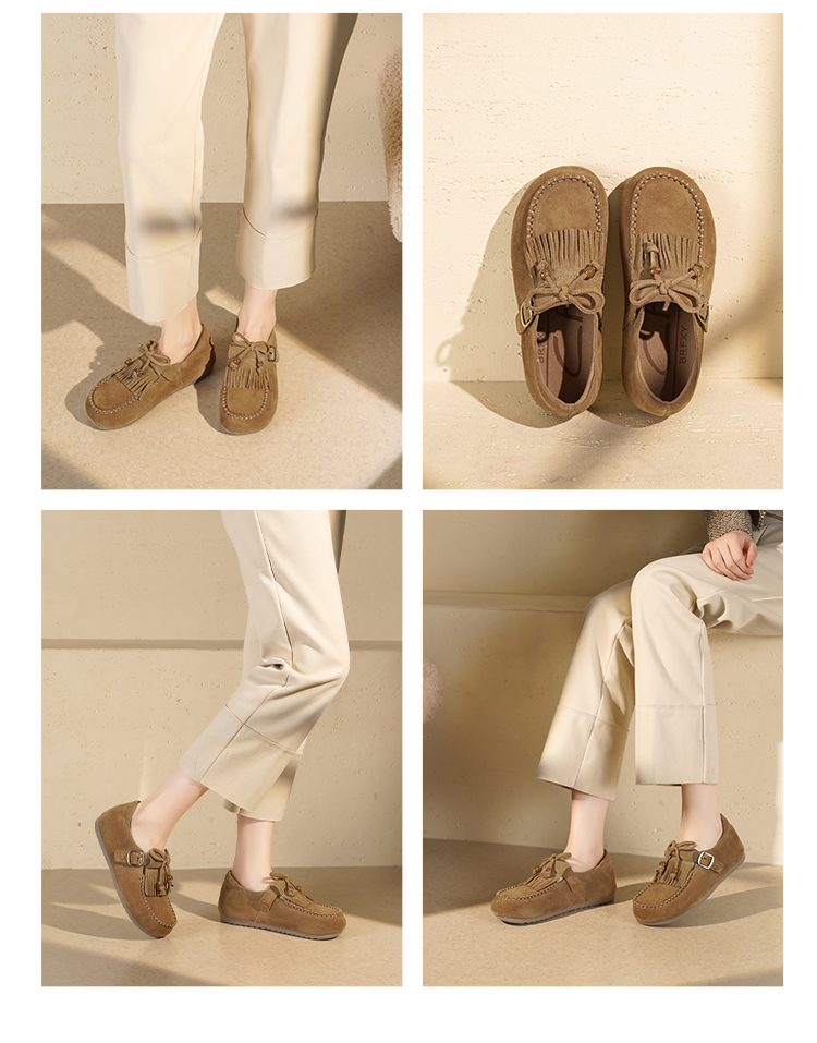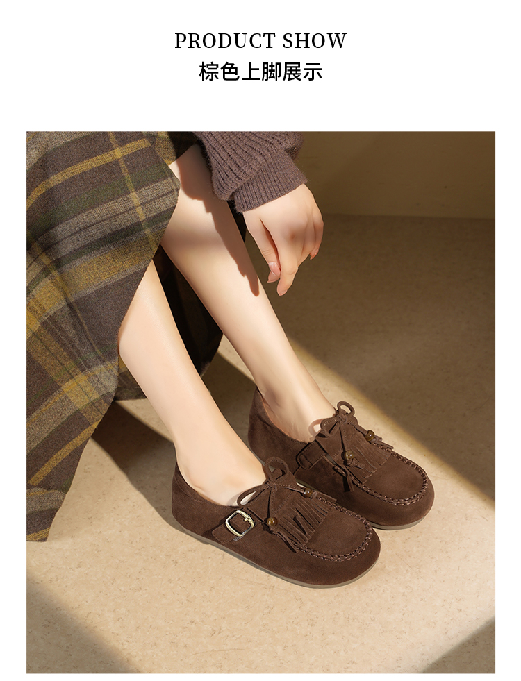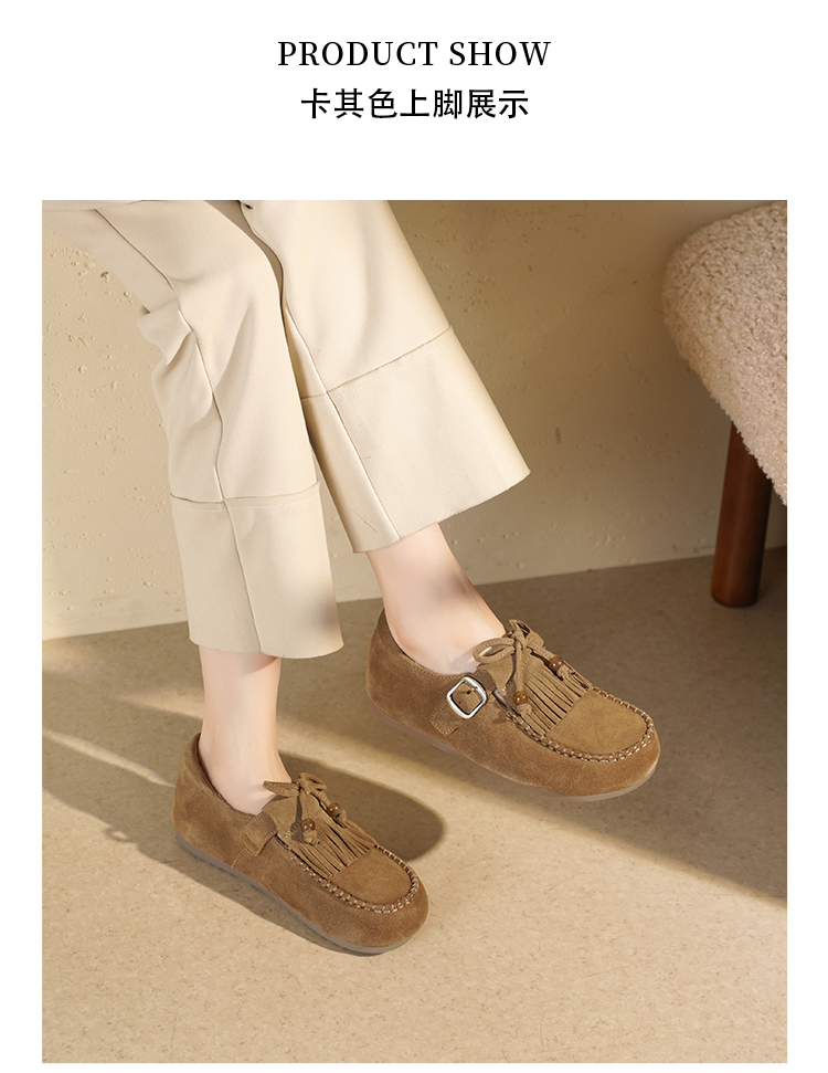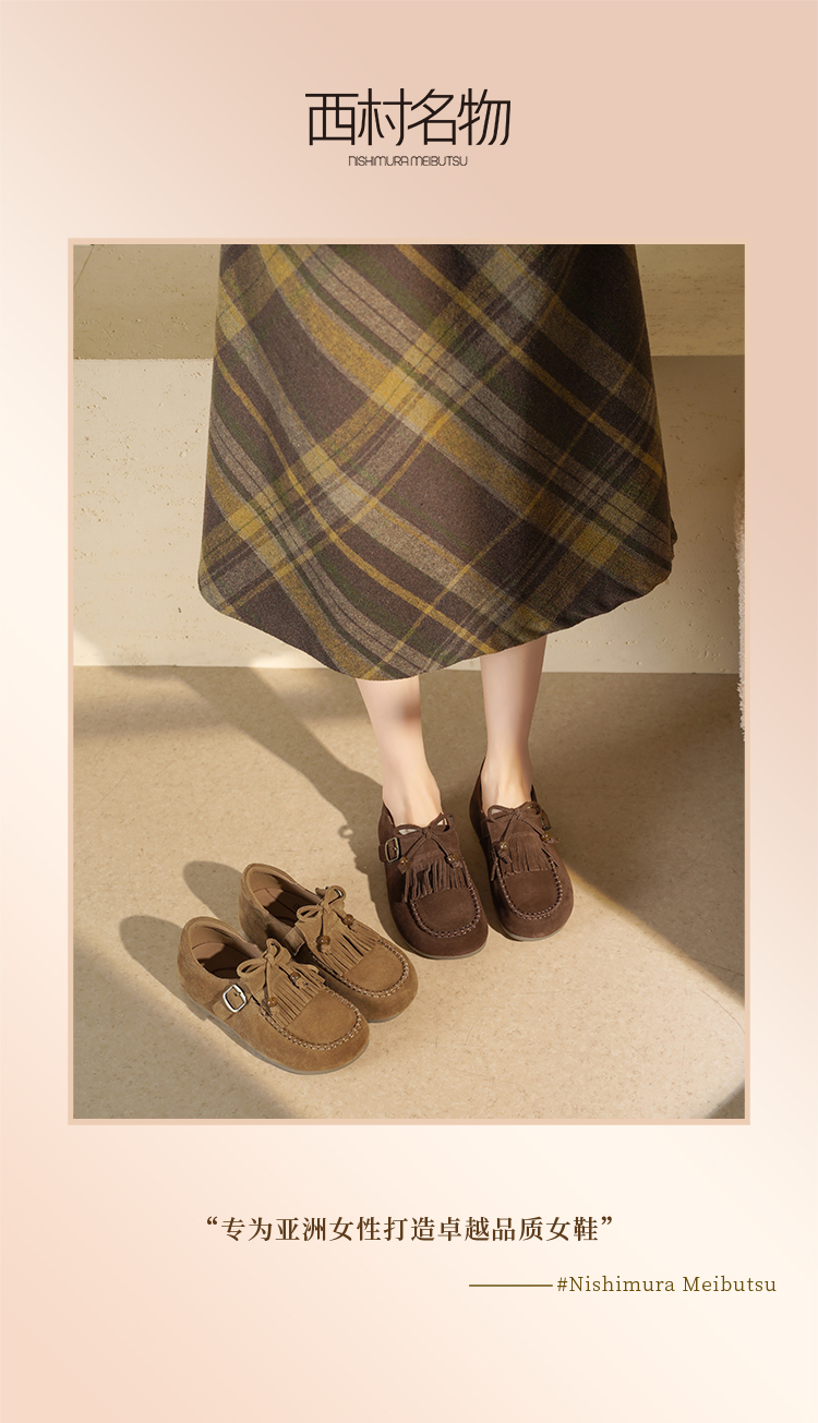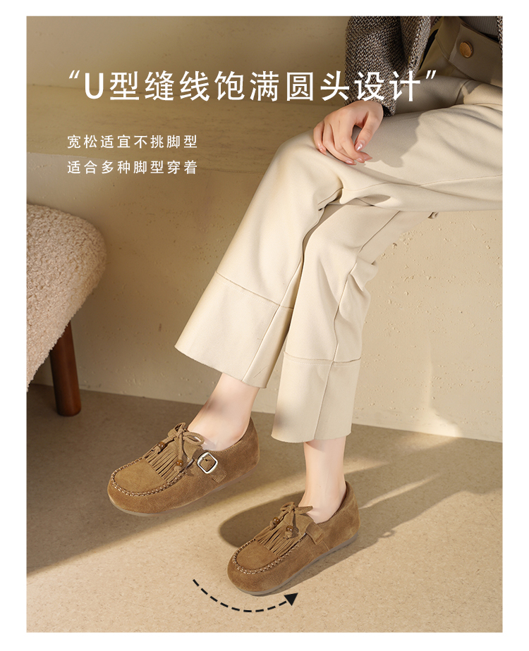 西村名物2025年秋季新款时尚流苏舒适平底深口鞋乐福鞋T25DM49381