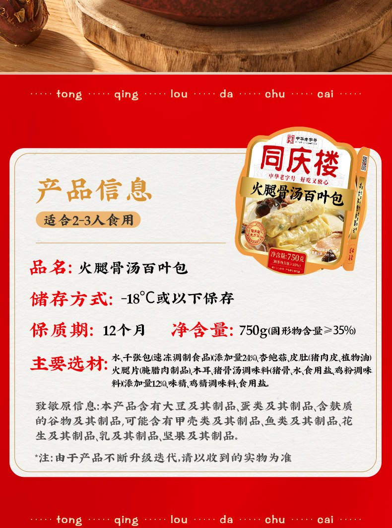 同庆楼 火腿骨汤百叶包750g 汁多馅满 一口香鲜浓郁 48小时发货