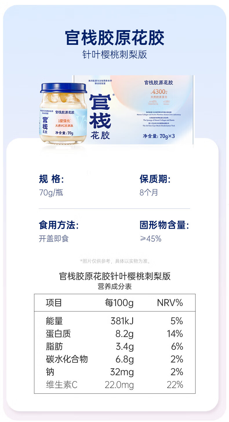 【特惠保质期到2025-08-27到期介意慎拍】官栈胶原花胶210g(3瓶装)