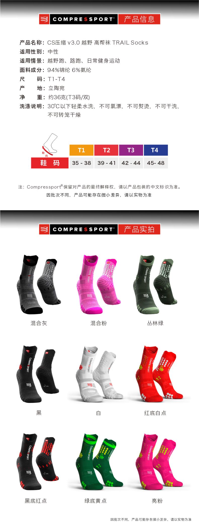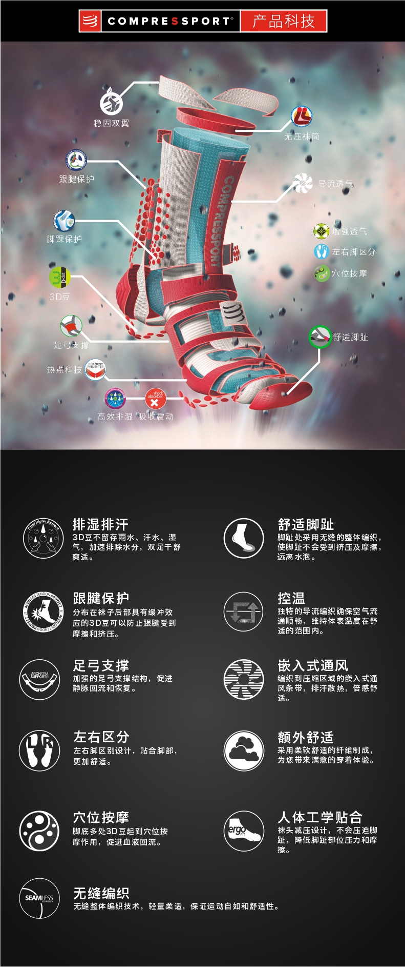 COMPRESSPORT CS TSHV3 3D豆越野跑高帮袜V3.0
