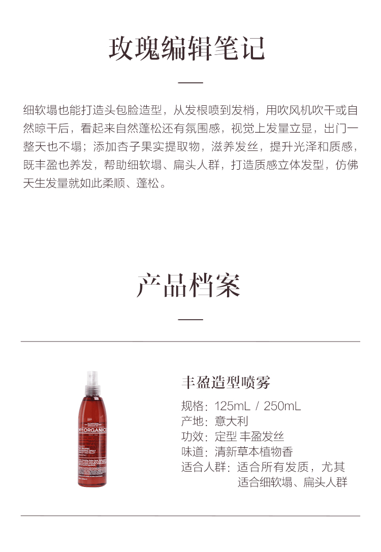 保税直发 MY.ORGANICS 丰盈造型喷雾 250mL