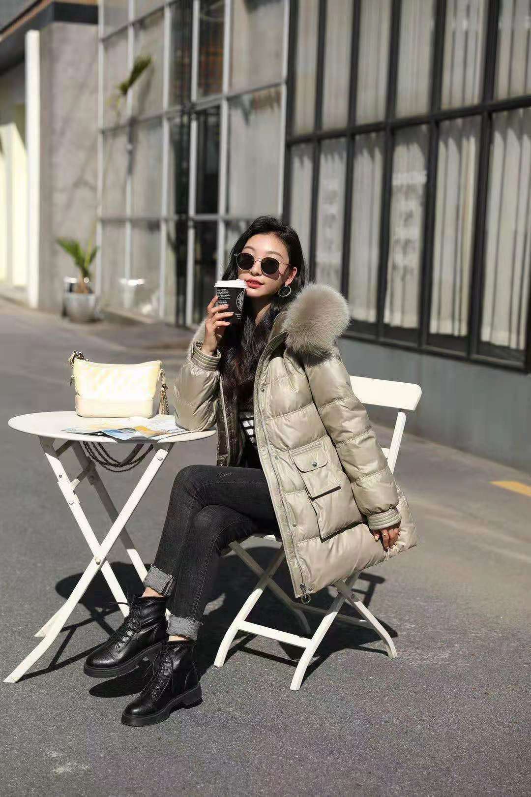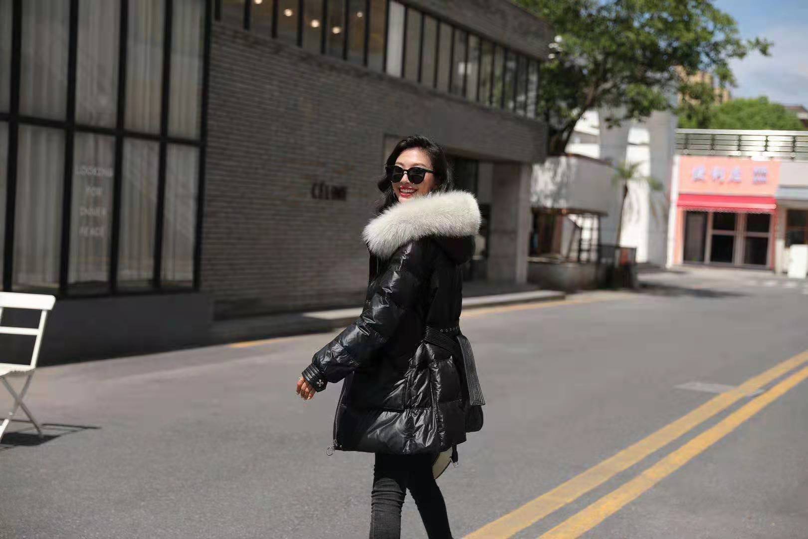 返季羽绒服205Y2905款黑色浅绿色真狐狸毛超大毛领中间带腰带码数MLXL90-125斤可穿90白鸭绒原价