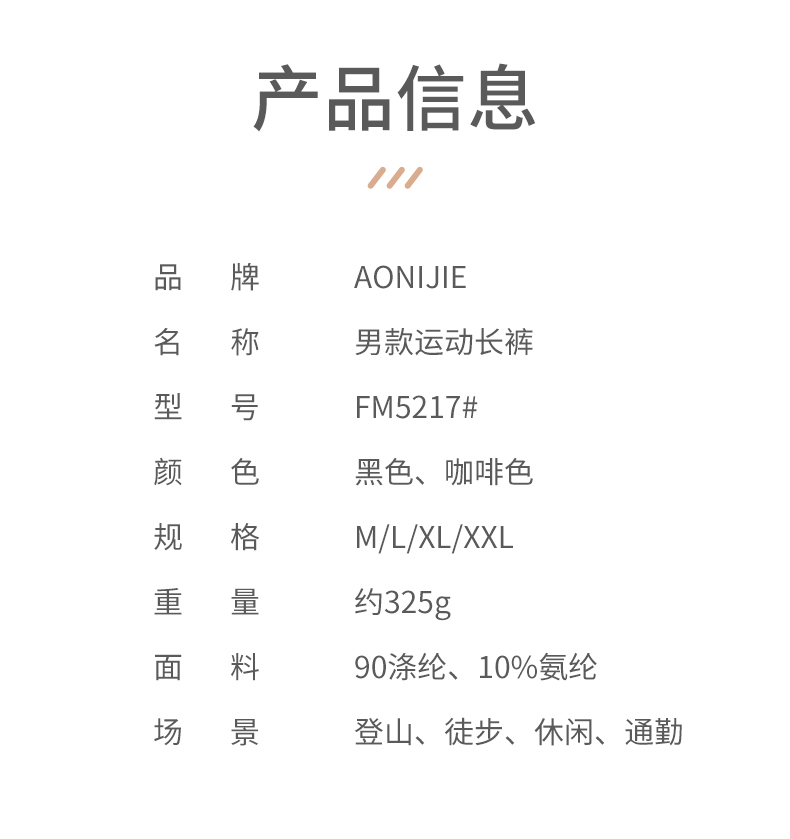 奥尼捷男款运动长裤秋冬透气保暖户外徒步登山跑步裤子/FM5217