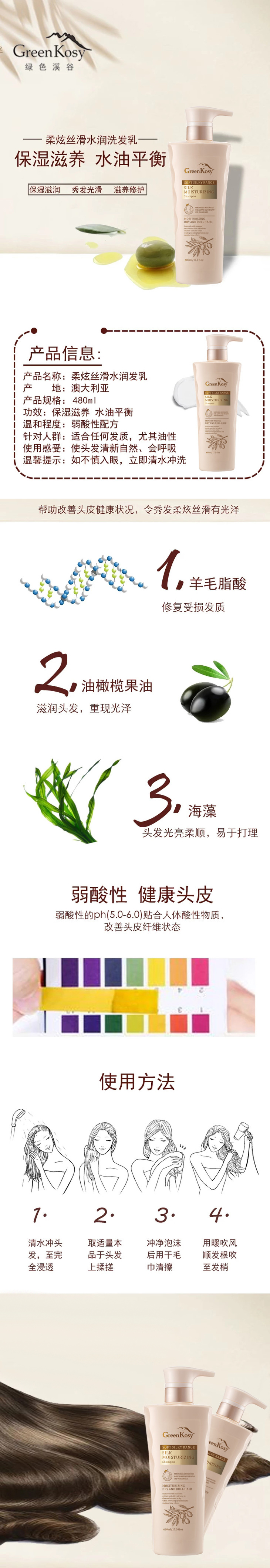 绿色溪谷柔炫丝滑水润洗发水480ML-0520 国产/进口版本随机发