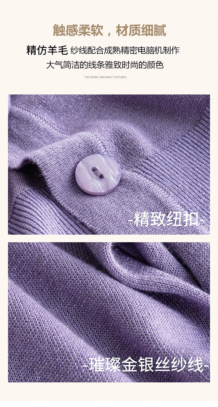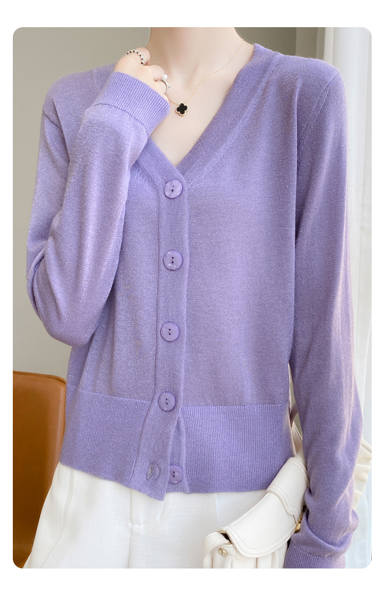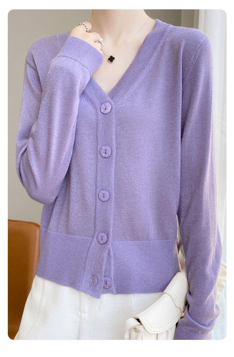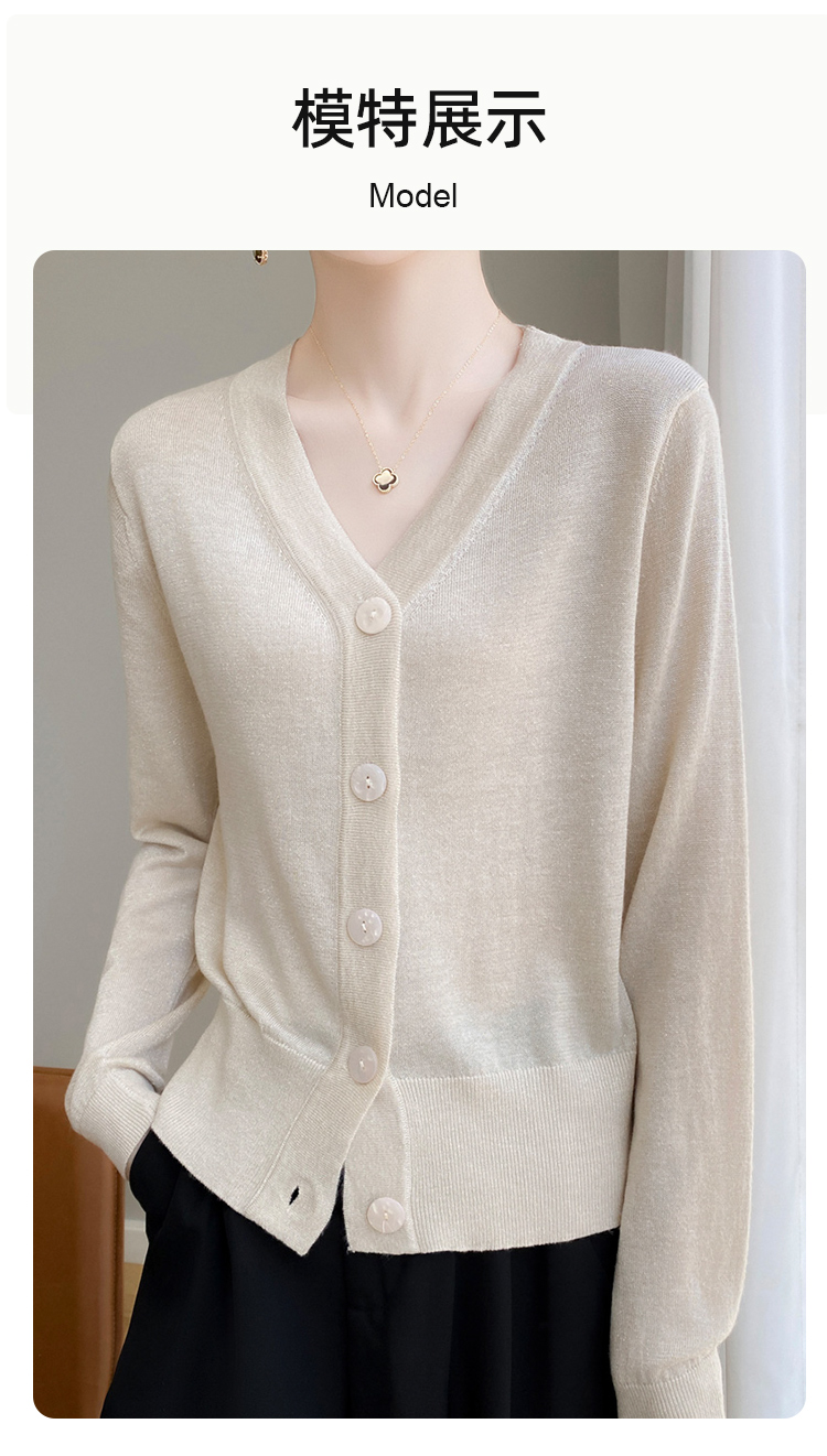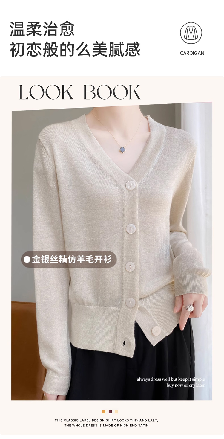 针织衫女金银丝工艺开衫新款秋季薄款春秋外搭长袖上衣v领毛衣外套SZ2702