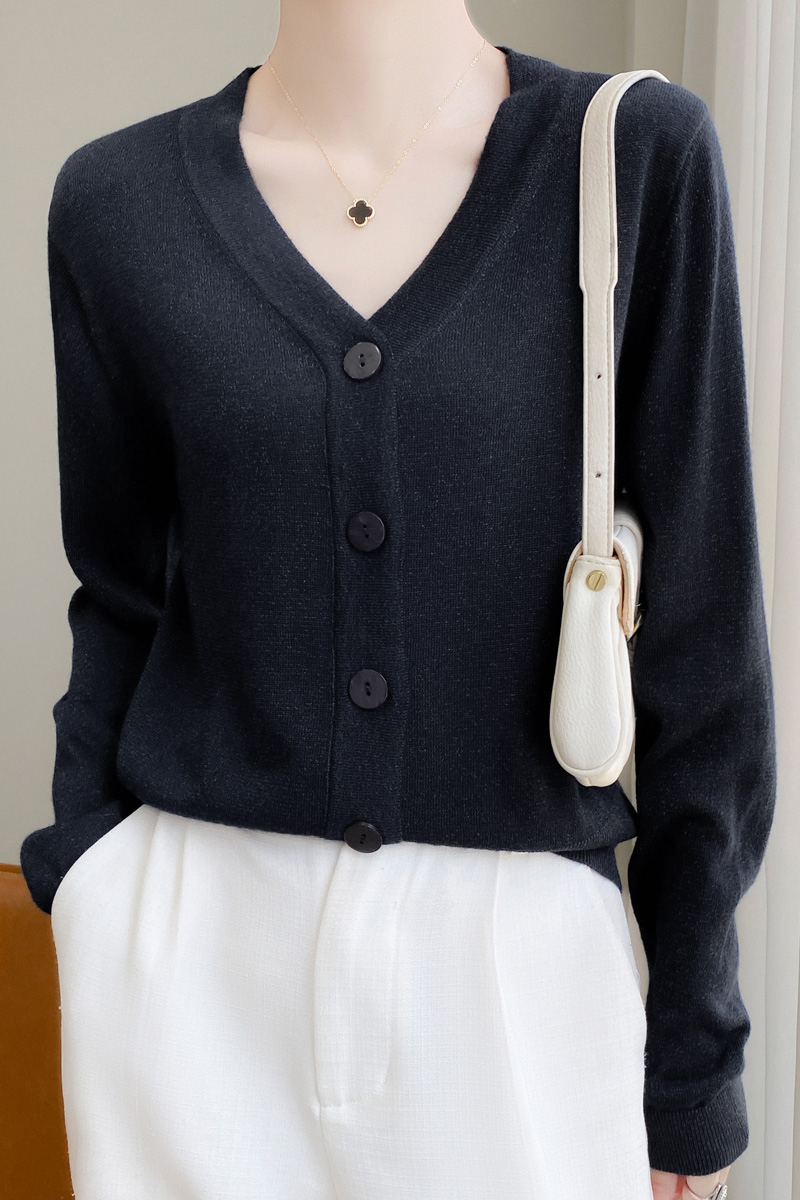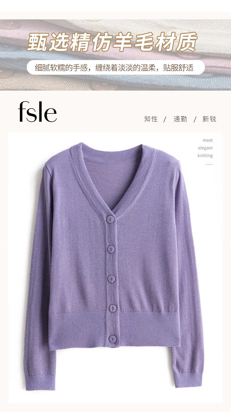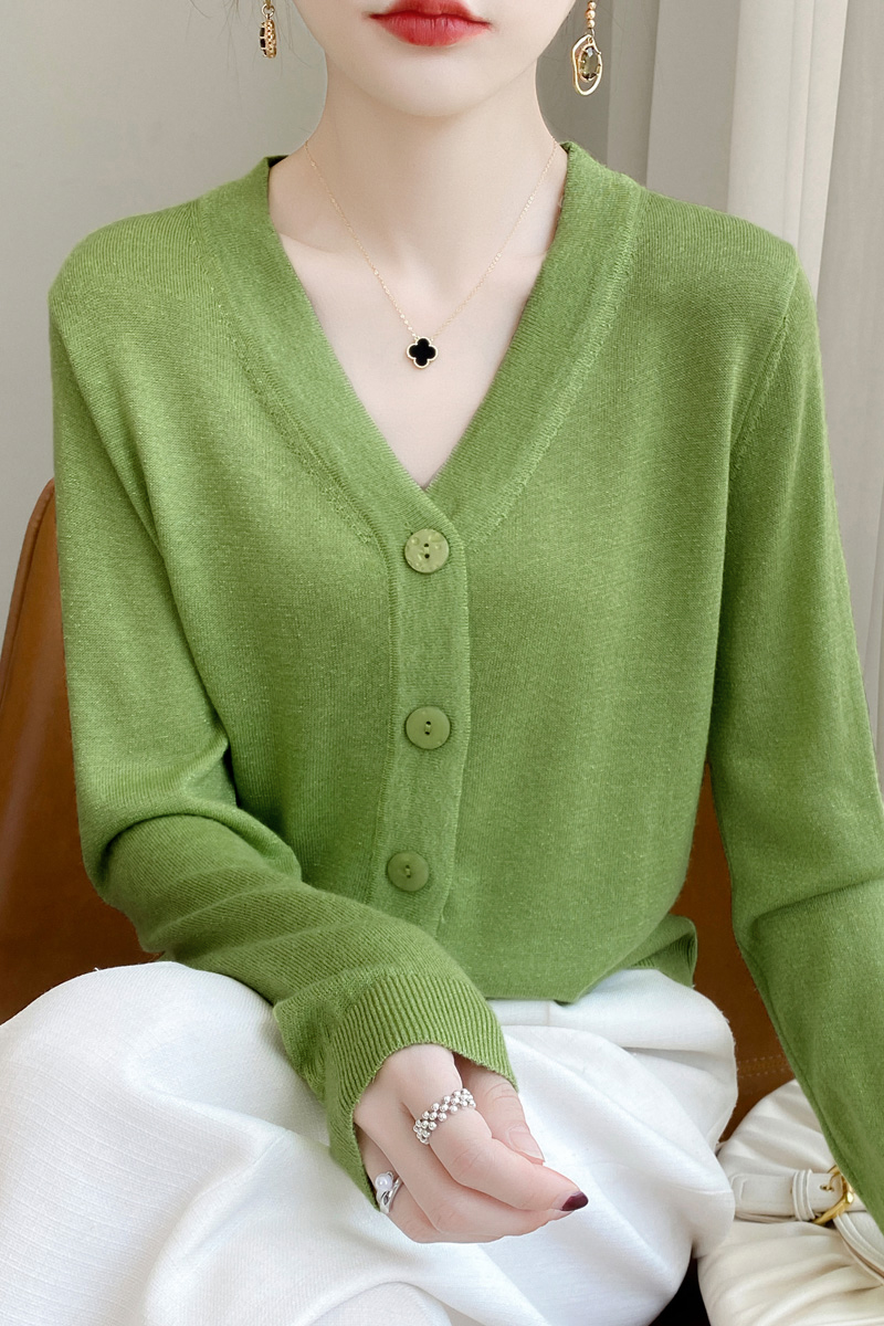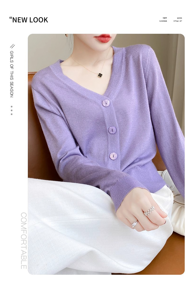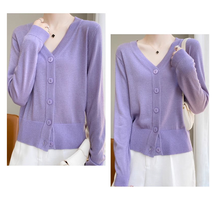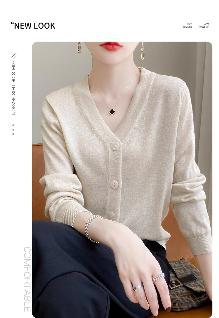 针织衫女金银丝工艺开衫新款秋季薄款春秋外搭长袖上衣v领毛衣外套SZ2702