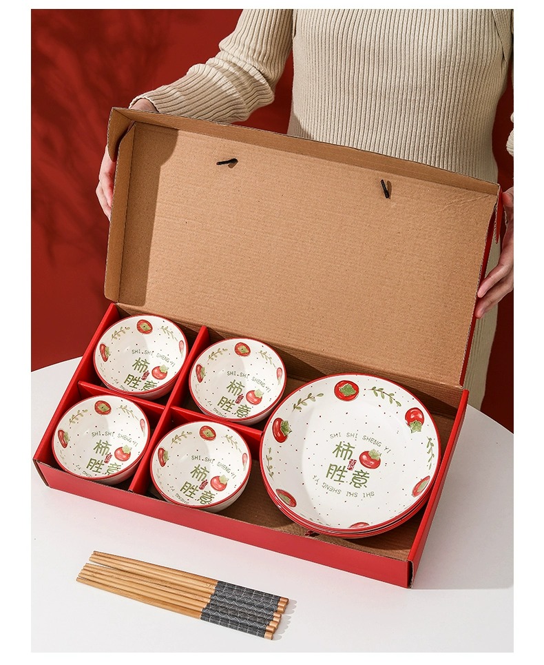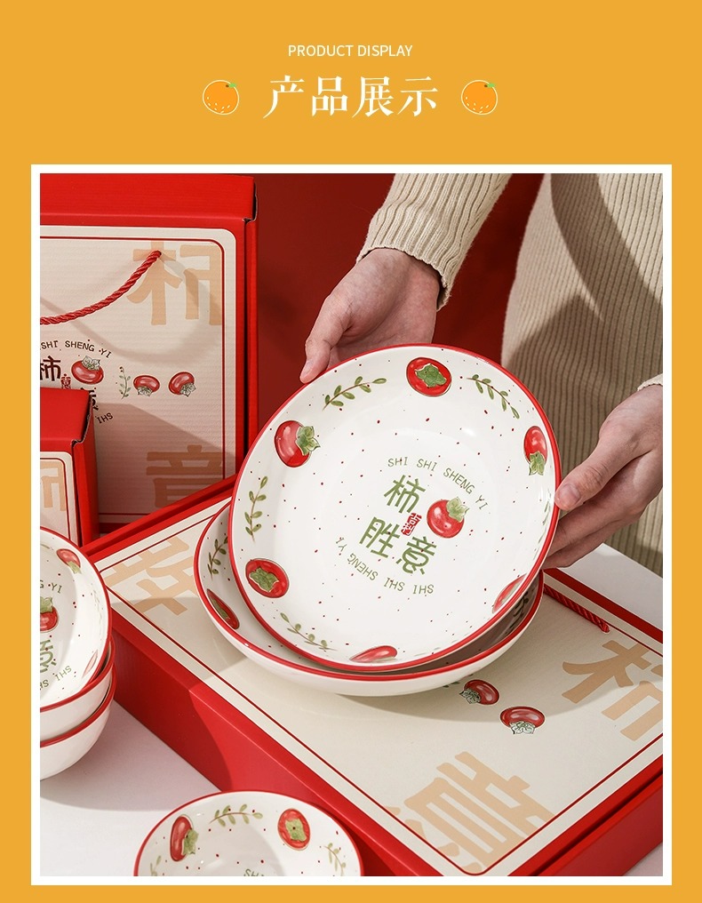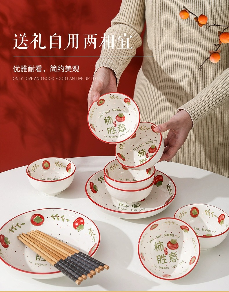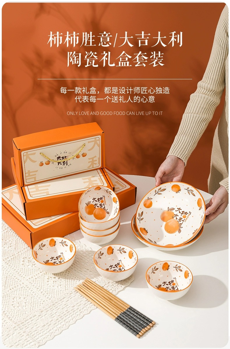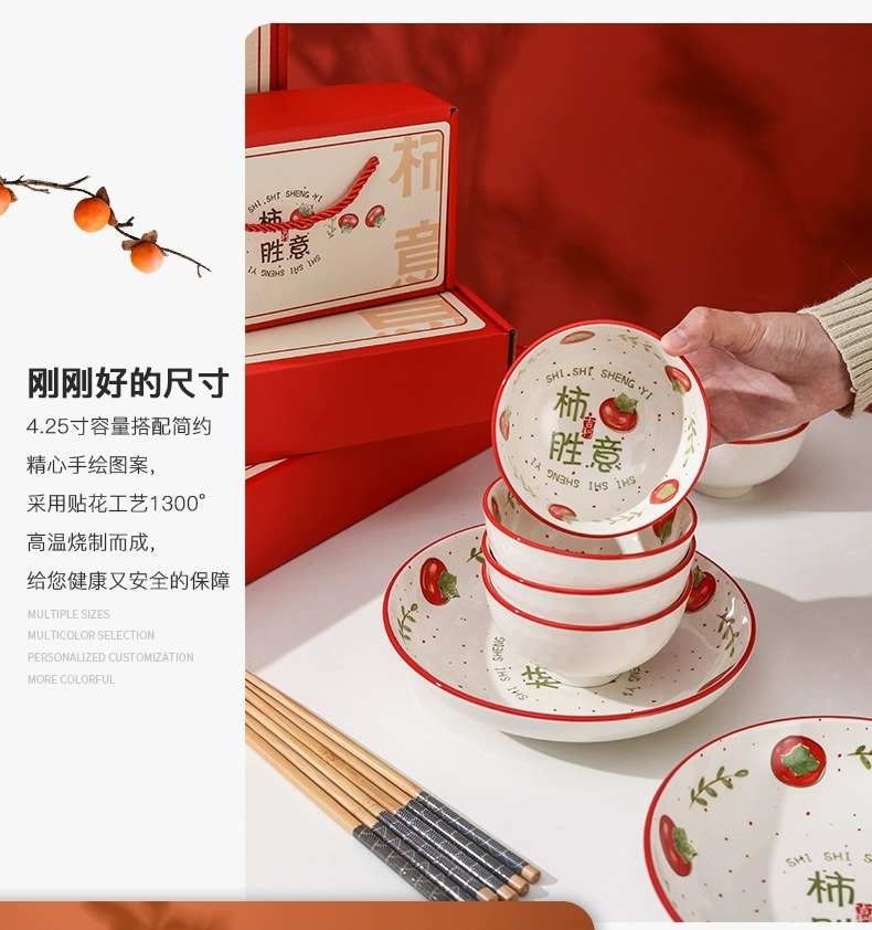 新春礼盒 | 大吉大利&柿柿如意新年碗筷 国潮韵味 釉下彩工艺 安全环保 创意陶瓷碗