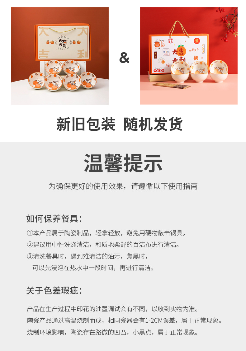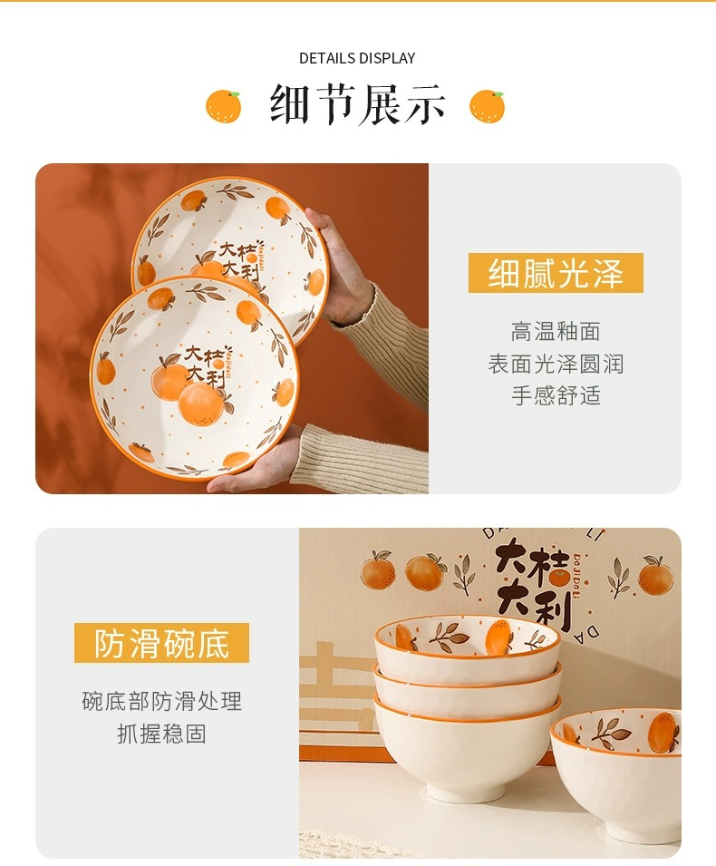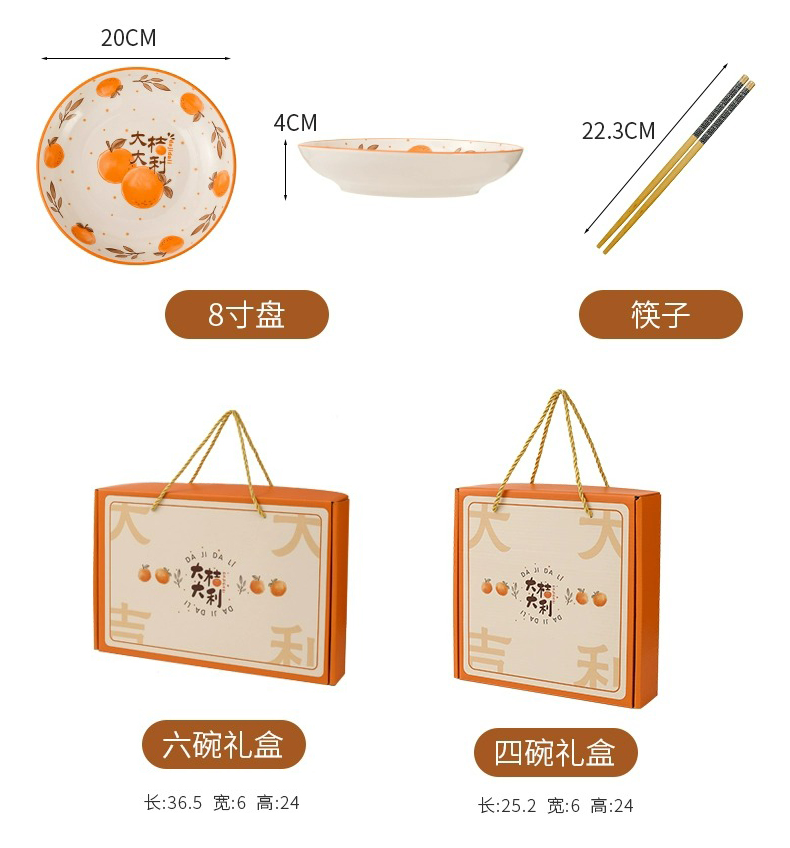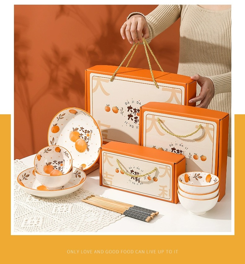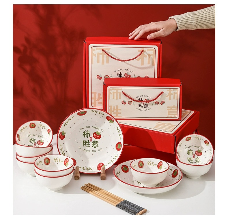 新春礼盒 | 大吉大利&柿柿如意新年碗筷 国潮韵味 釉下彩工艺 安全环保 创意陶瓷碗