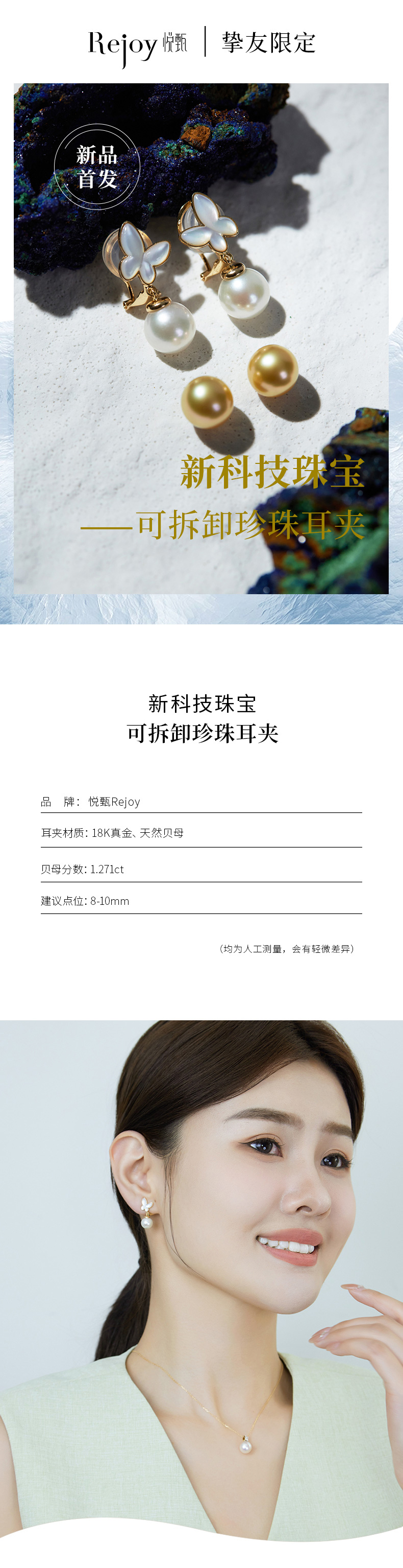 【黑科技】黑科技珠宝-可拆卸珍珠耳夹 蝶盈(会员享试戴权益,定制后不支持7天无理由退换货)
