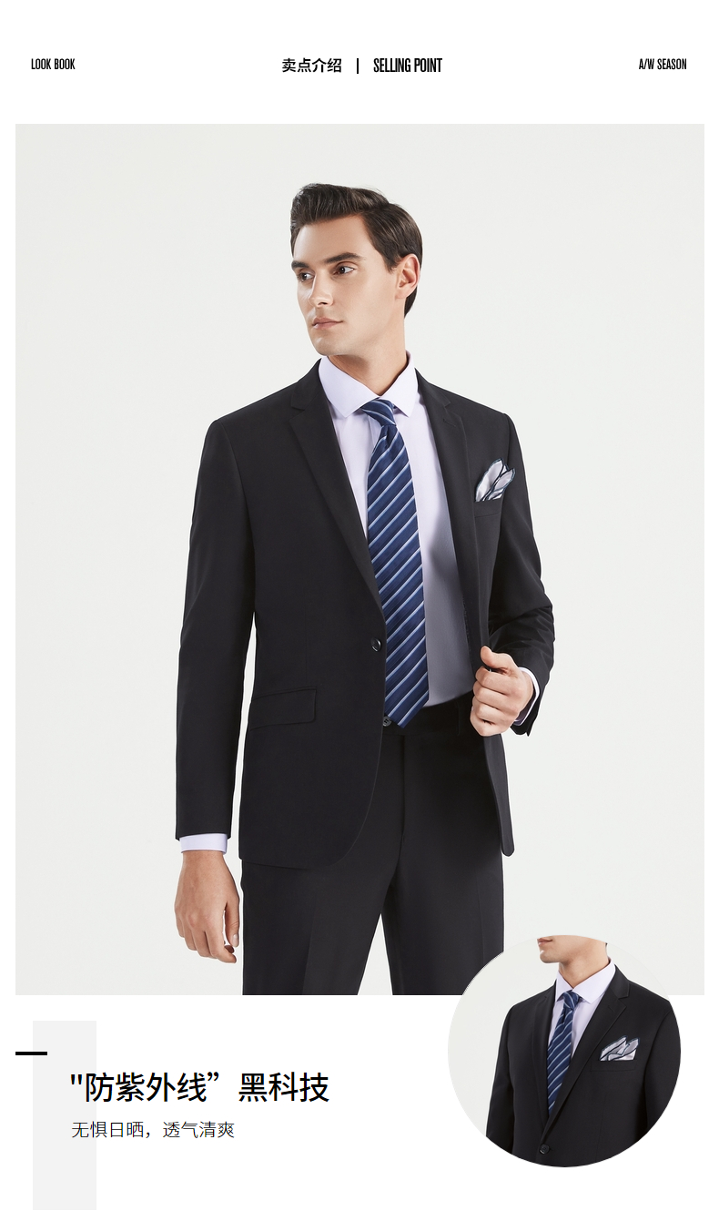 柒牌男士西服套装春季新款商务通勤职业青年正装防紫外线套西 122C70120
