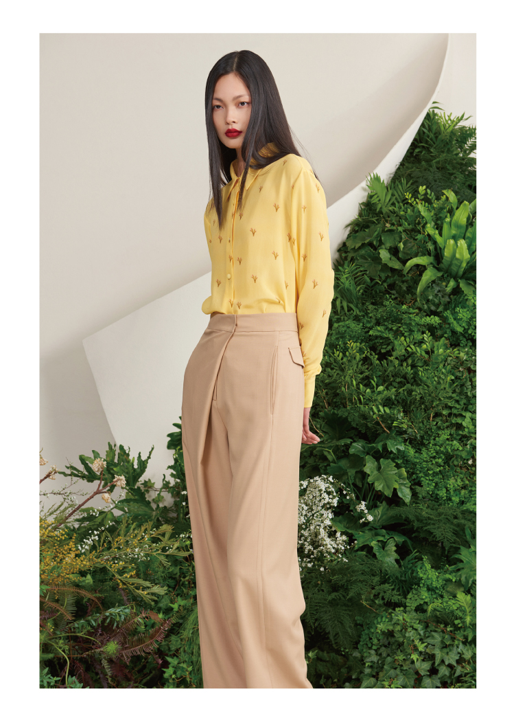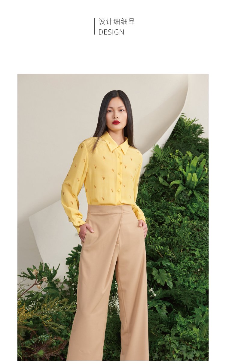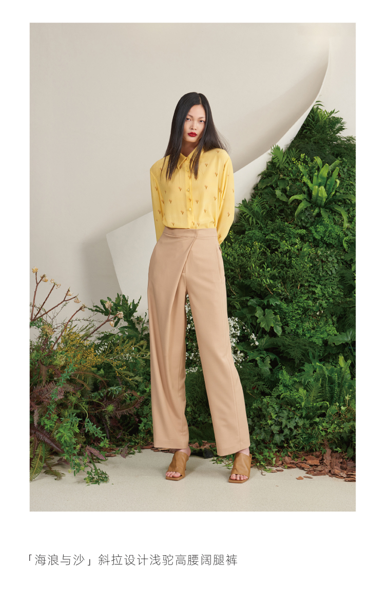 【海浪与沙】斜拉设计浅驼高腰阔腿裤/00098
