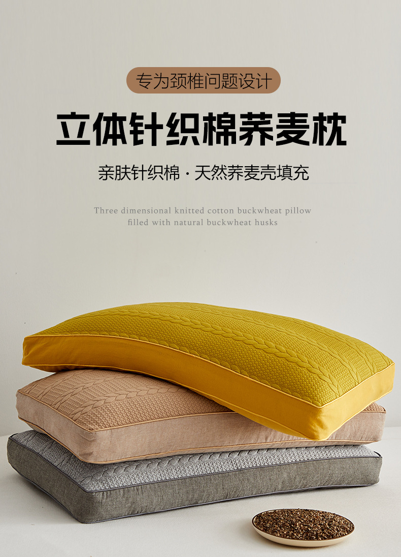 【立体针织棉荞麦枕】立体针织棉荞麦枕头吸汗透气护颈枕芯可拆洗批发代发单人