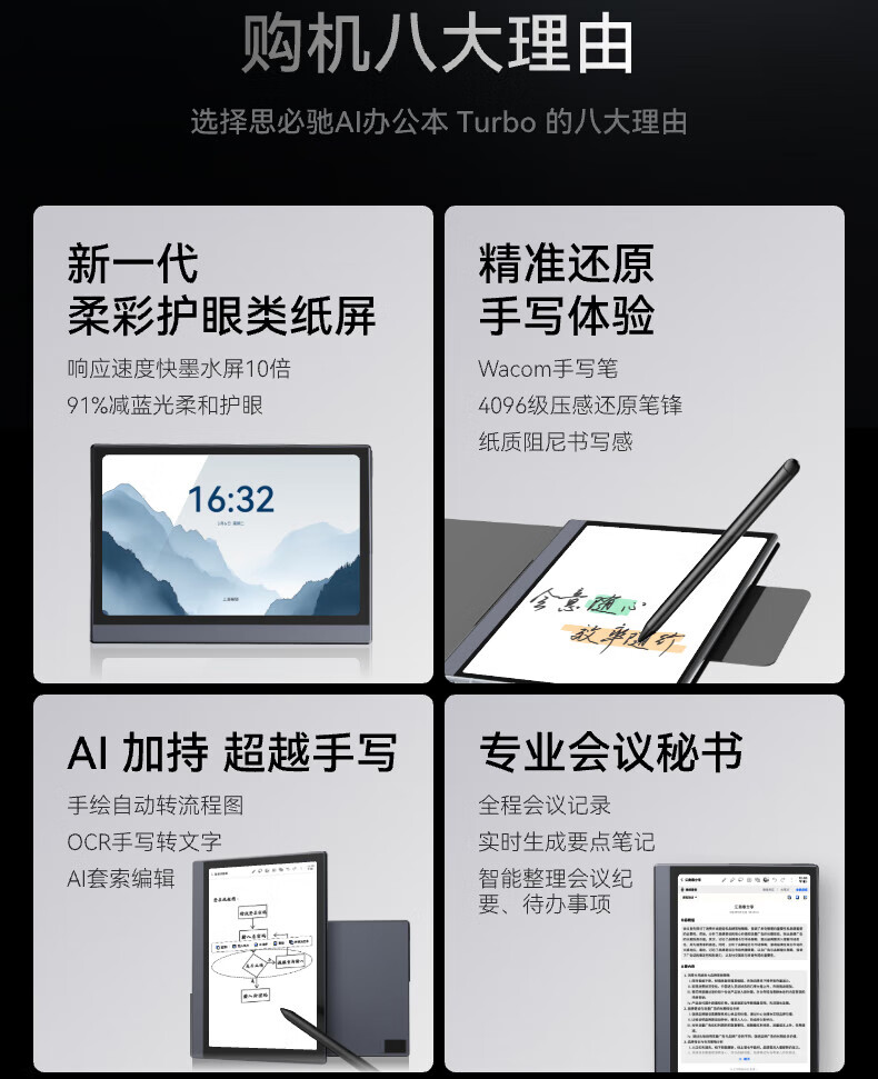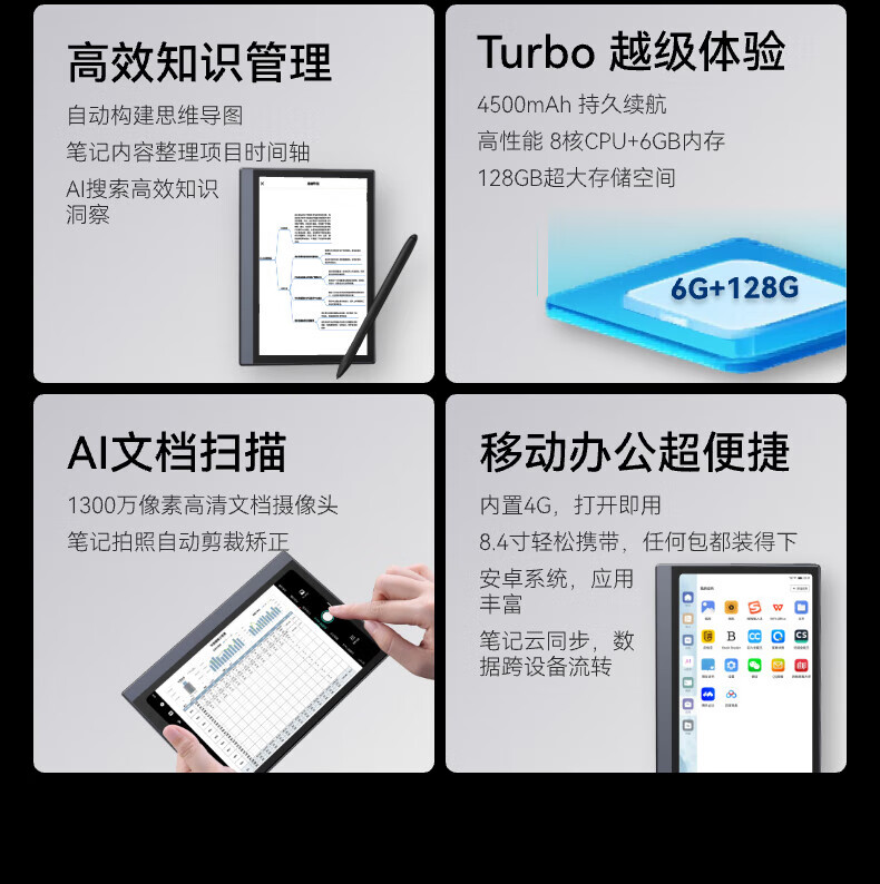 【思必驰重磅新品】4G AI智能办公本Turbo 8.4英寸柔彩屏智能电子书电纸书电子笔记本 AINOTE-A2 TURBO(标配)