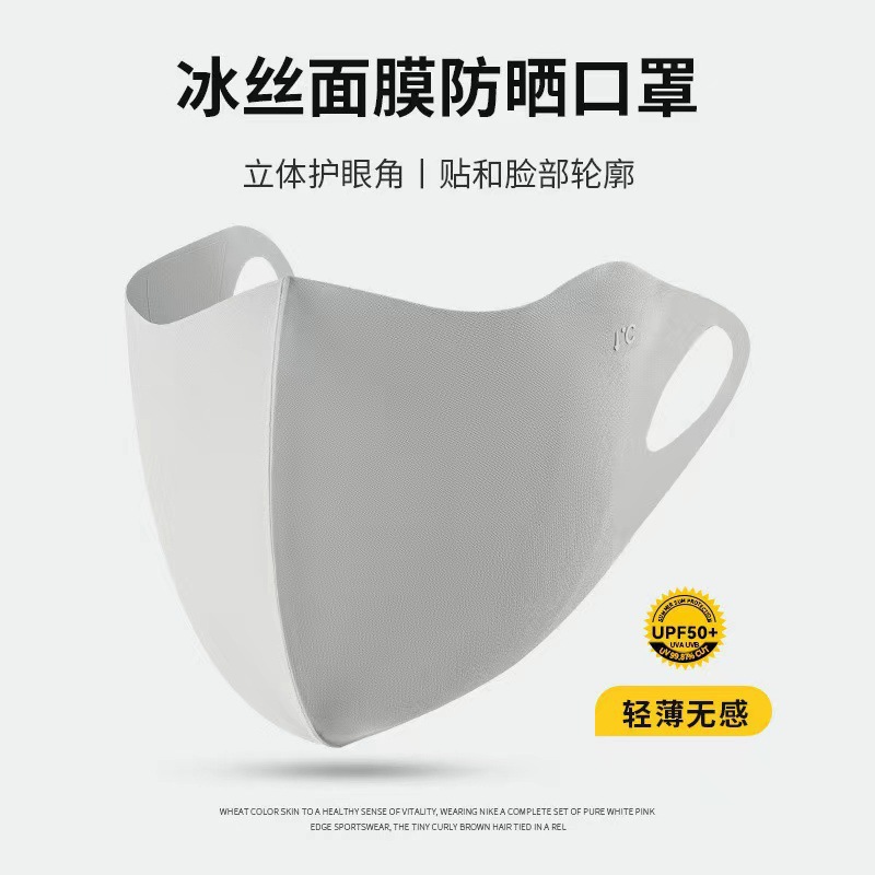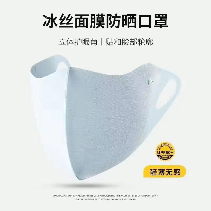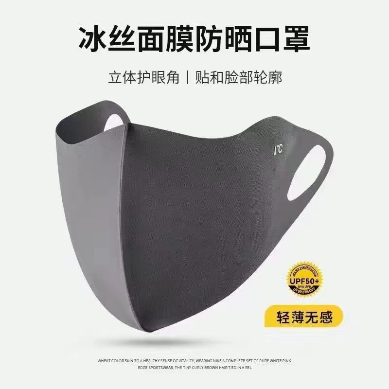 「9.9到手5个!数色可选」冰丝防晒口罩 冰丝面罩遮阳护眼角透气3d立体