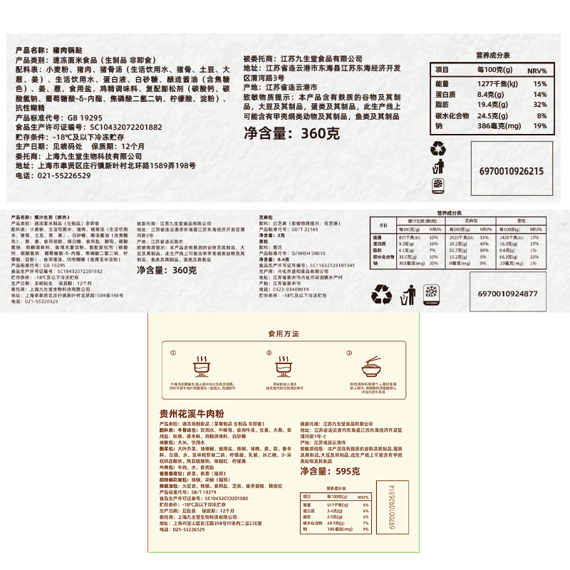 【发出后不支持拦截退货】九生堂 组合(贵州花溪牛肉粉*2+猪肉锅贴*1+爆汁生煎*1)1910g