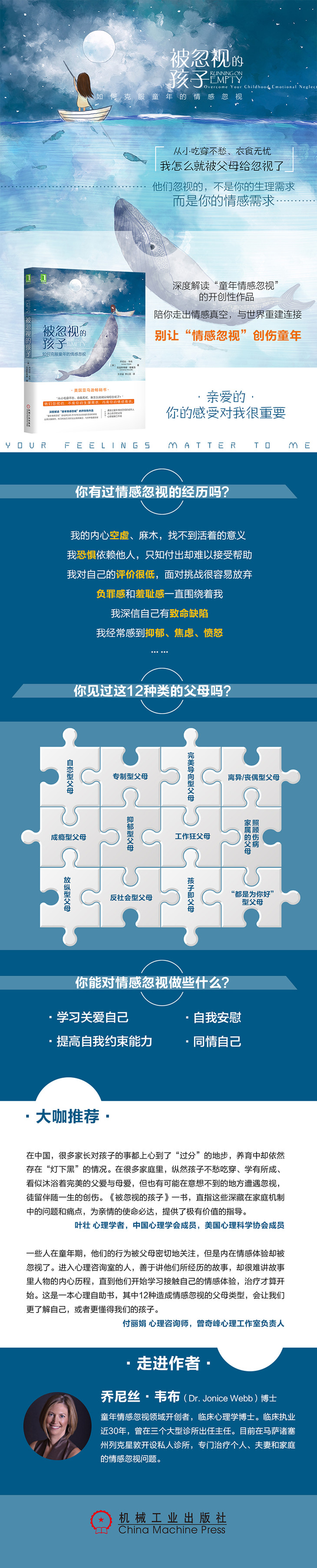 《被忽视的孩子》这本书会帮助你意识到童年时那些“没有发生”的事、那些你“不记得”的事,向你展现未发生之事的后果:掌控你生命的无形之力。