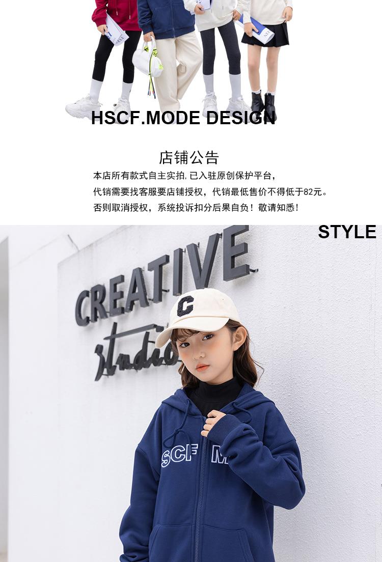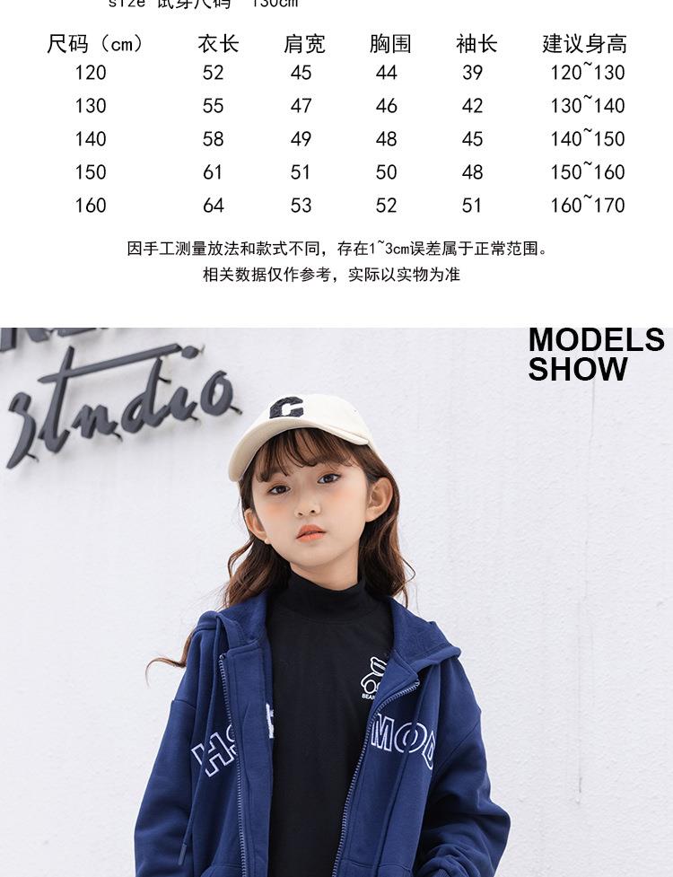 女童卫衣开衫拉链连帽卫衣2023春季加厚字母刺绣韩版宽松连帽卫衣