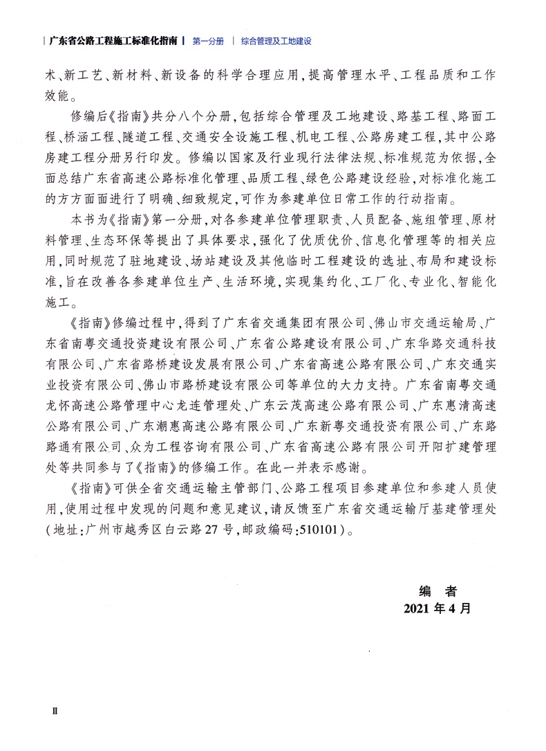 书名:广东省公路施工标准化指南 第一分册 综合管理及工地建设