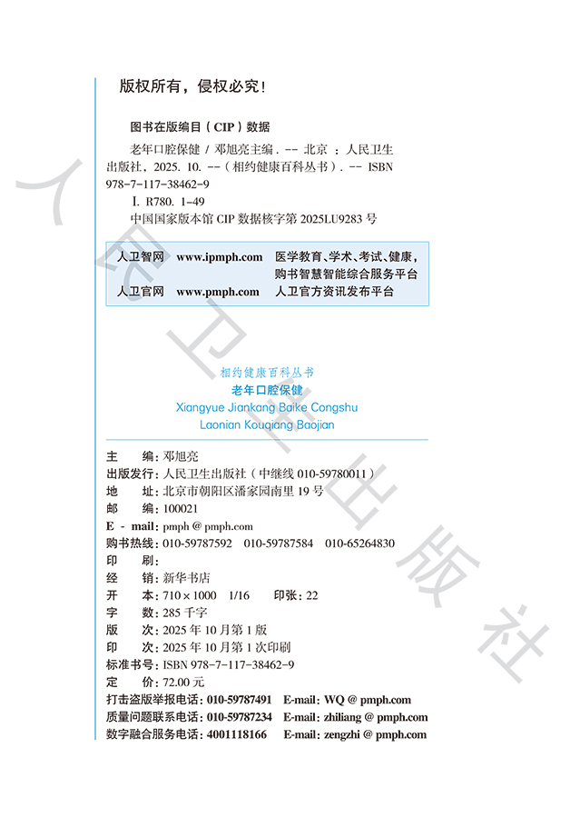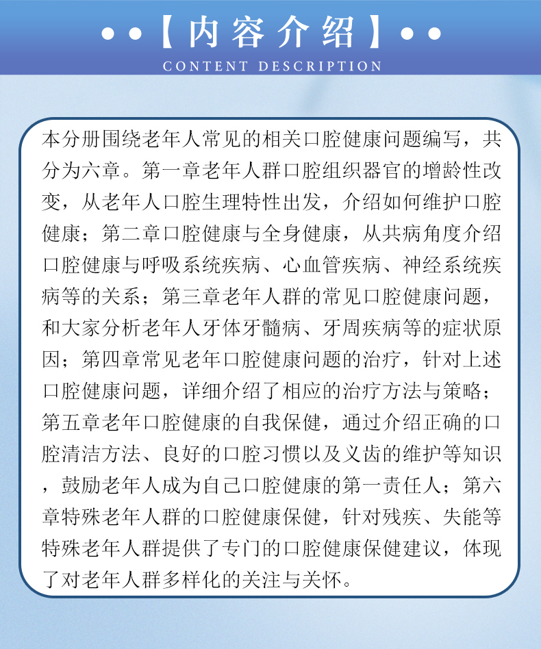 老年口腔保健 相约健康百科丛书 邓旭亮 主编 围绕老年人常见的相关口腔健康问题编写 科普 疾病防治 9787117384629人民卫生出版社