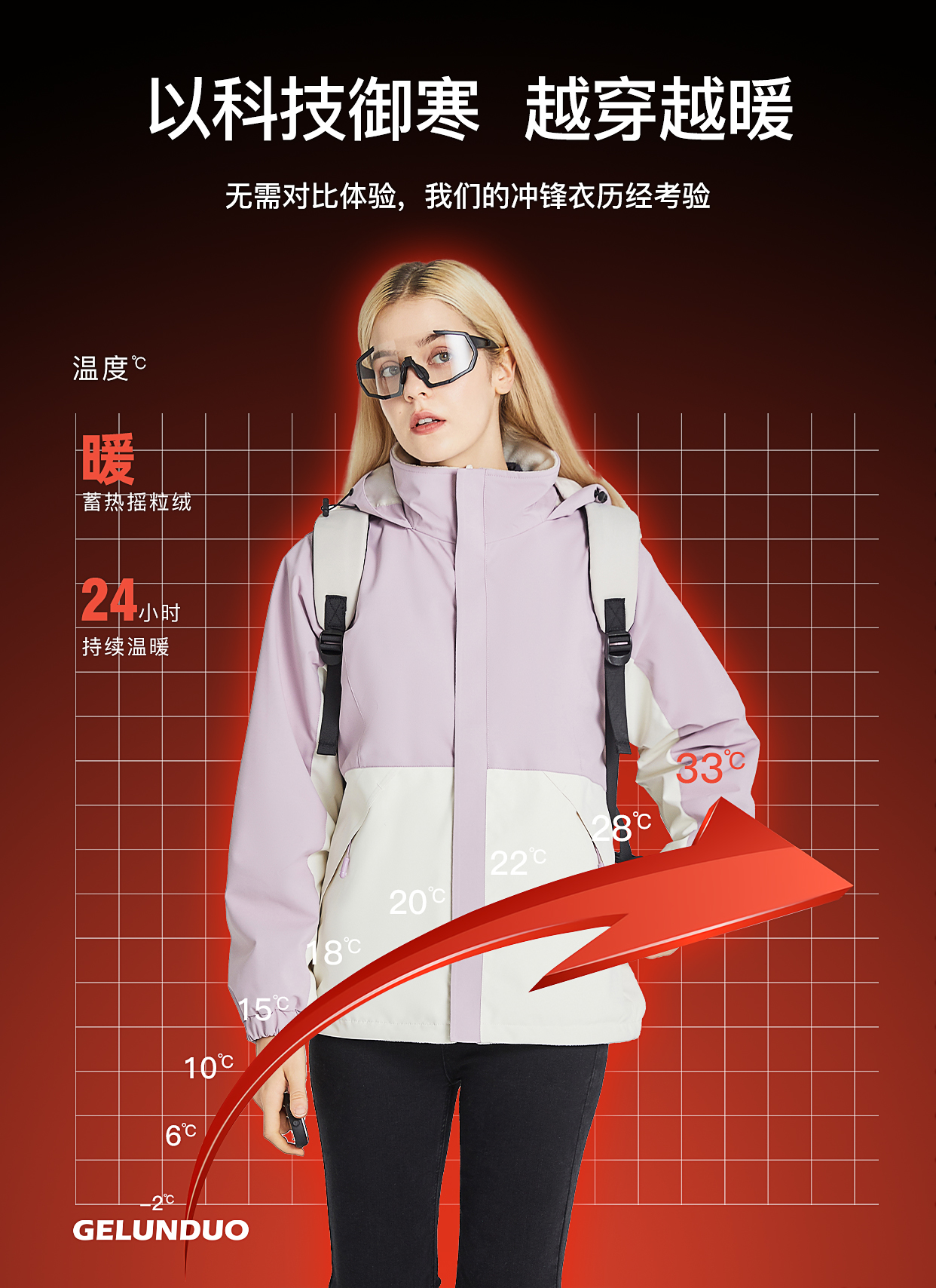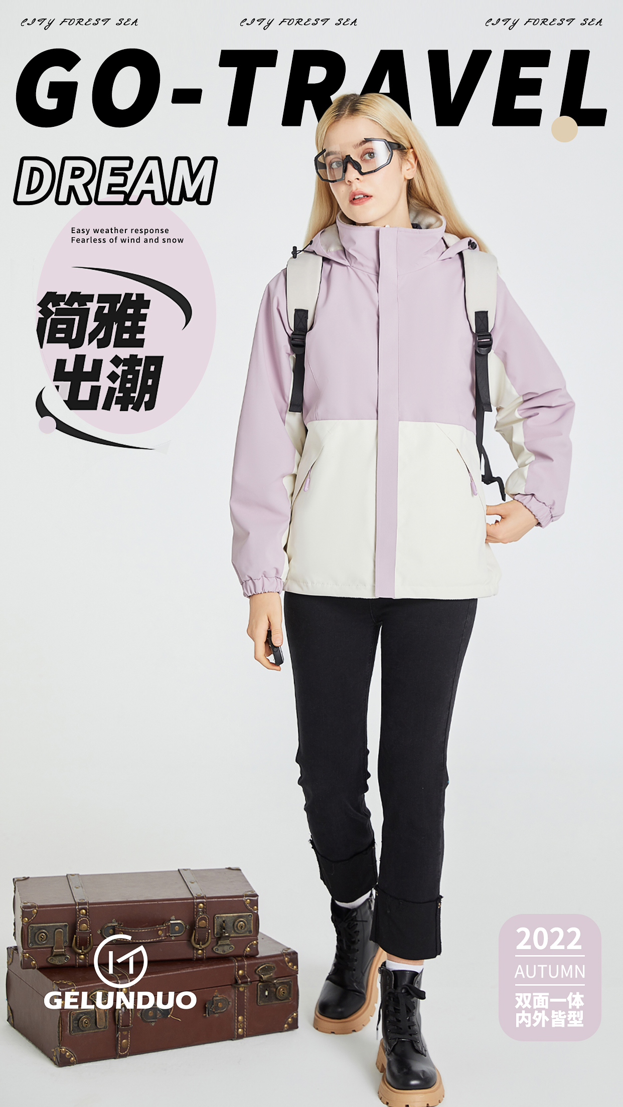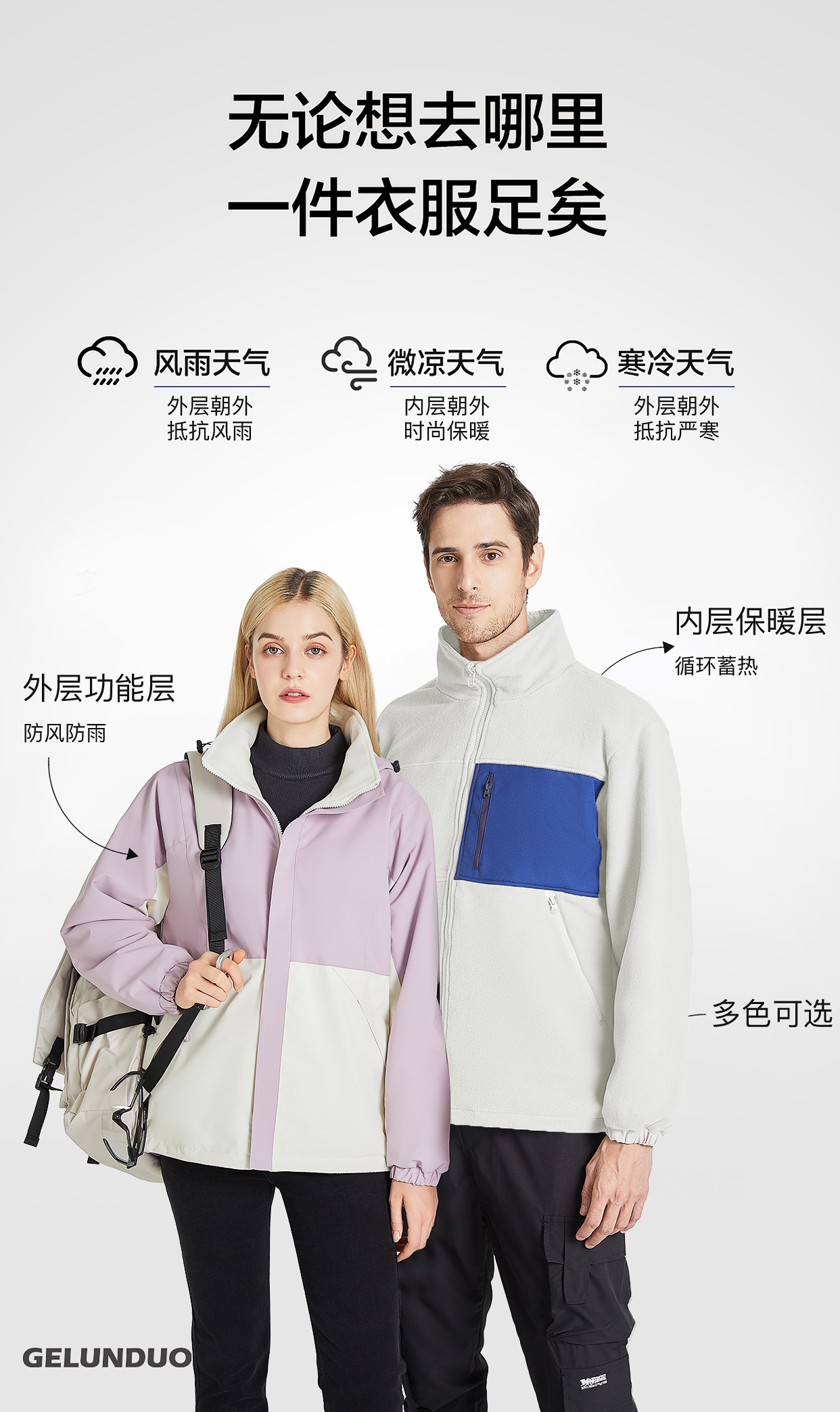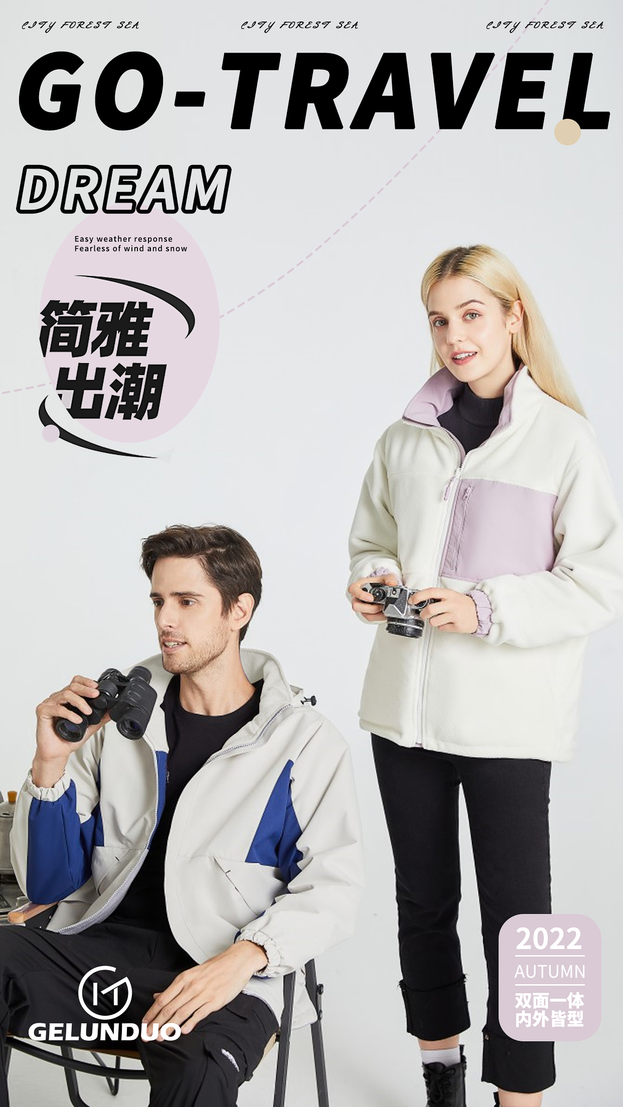 GELUNDUO歌伦多-“极野”双面抗寒情侣冲锋夹克外套8908