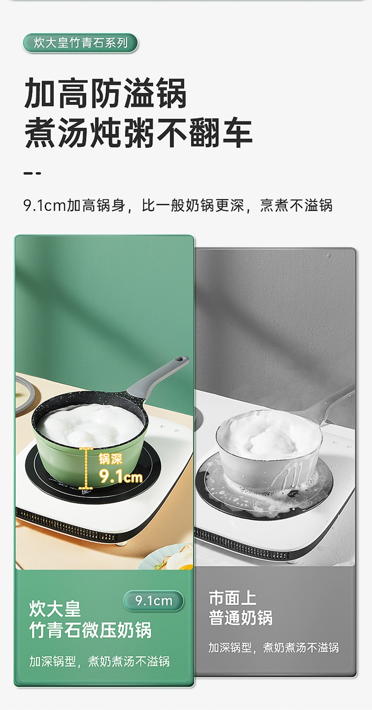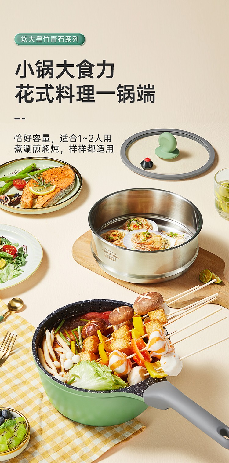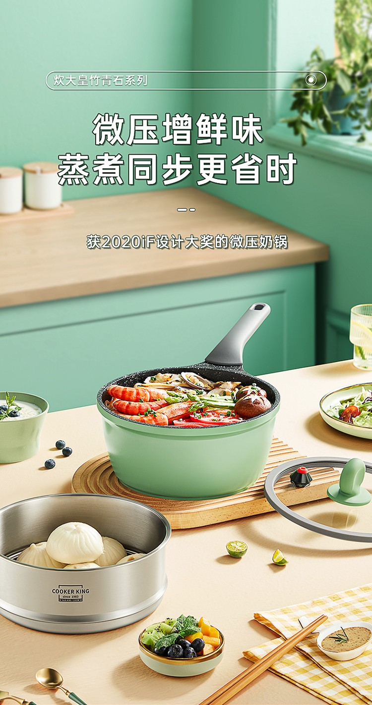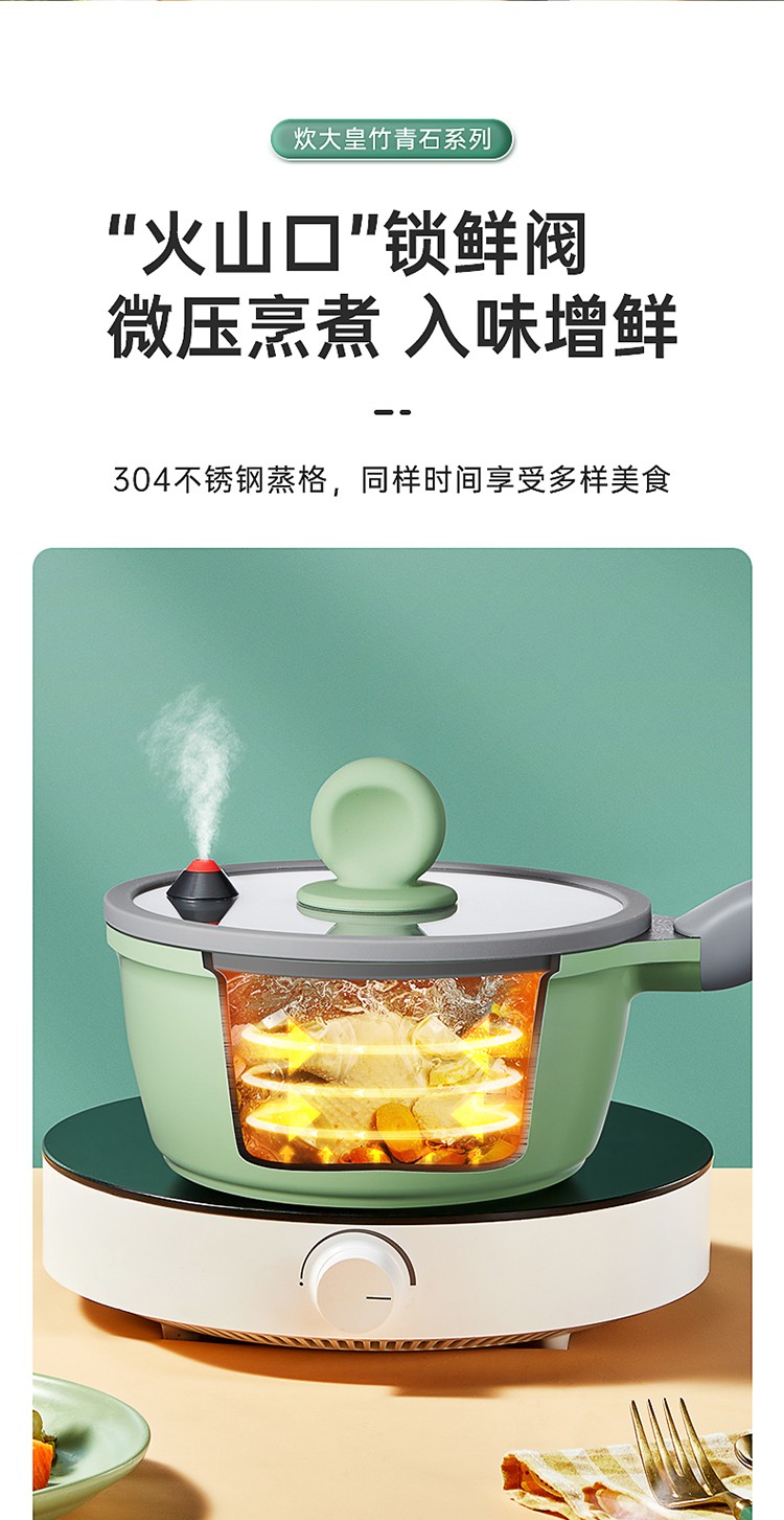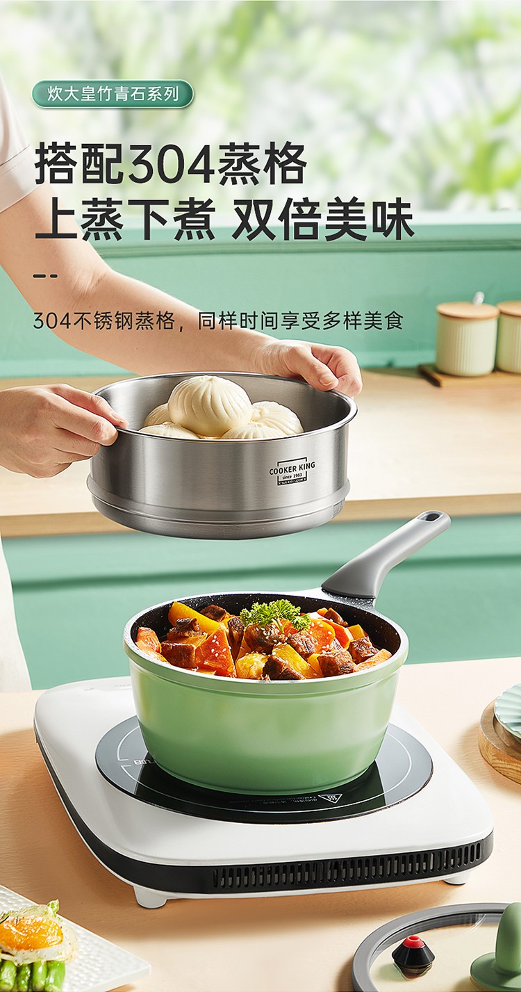 炊大皇奶锅不粘锅泡面锅宝宝婴儿热奶锅家用汤锅电磁炉燃气通用 【20cm+蒸笼】火山口锁鲜+微压