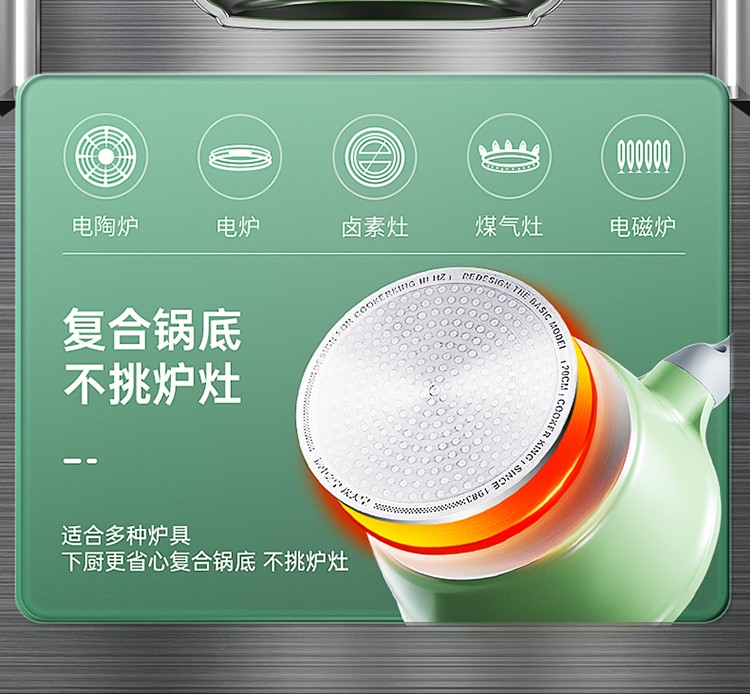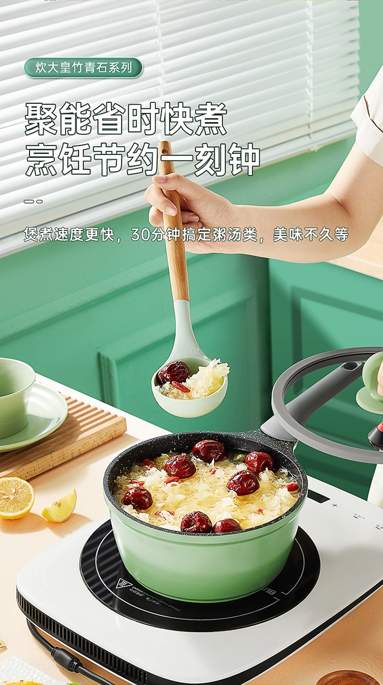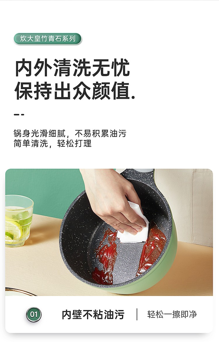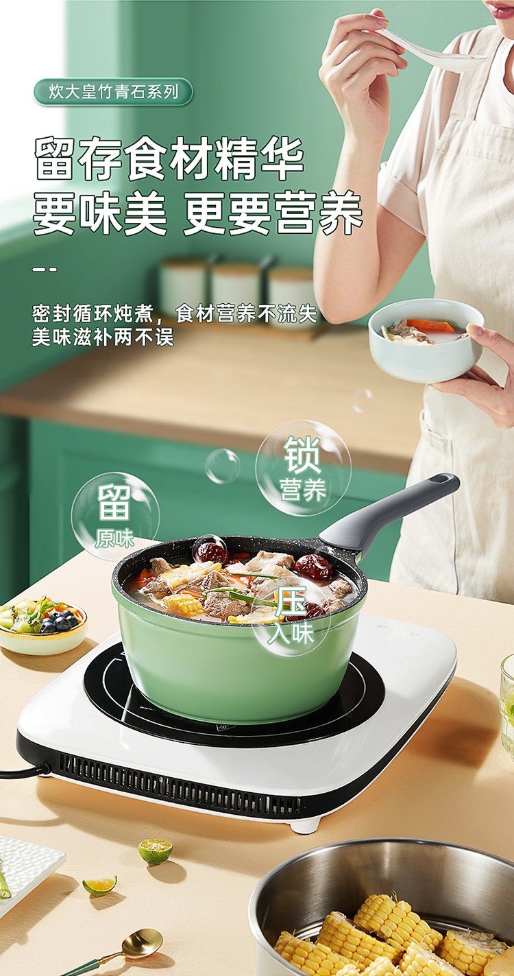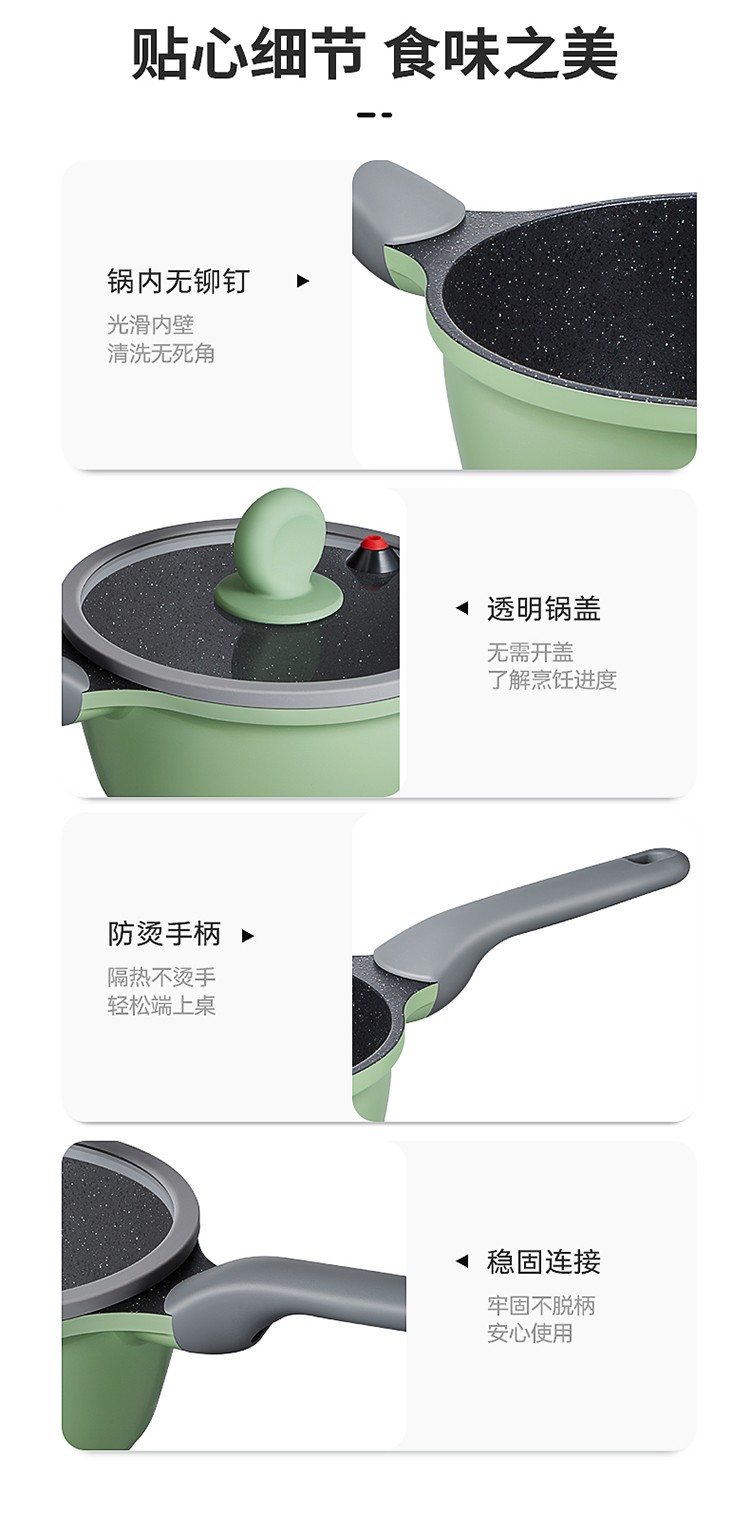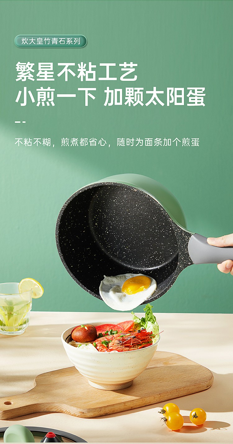 炊大皇奶锅不粘锅泡面锅宝宝婴儿热奶锅家用汤锅电磁炉燃气通用 【20cm+蒸笼】火山口锁鲜+微压
