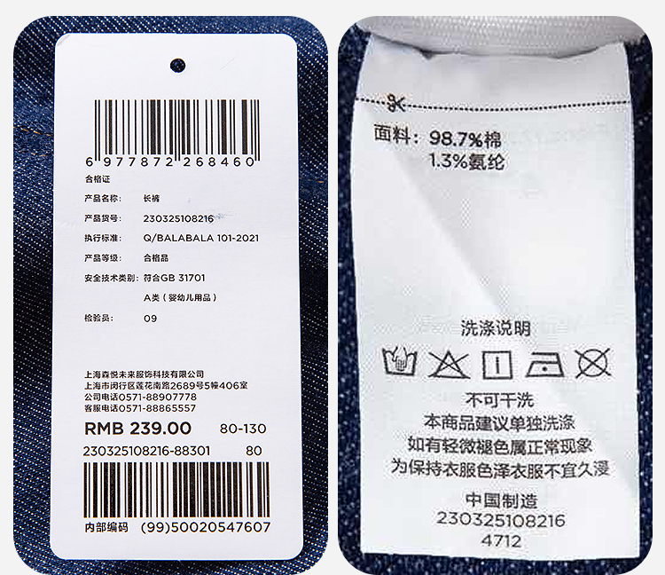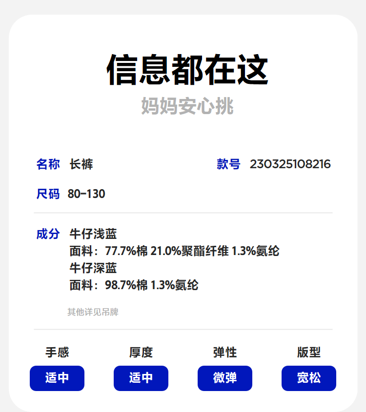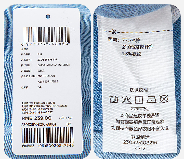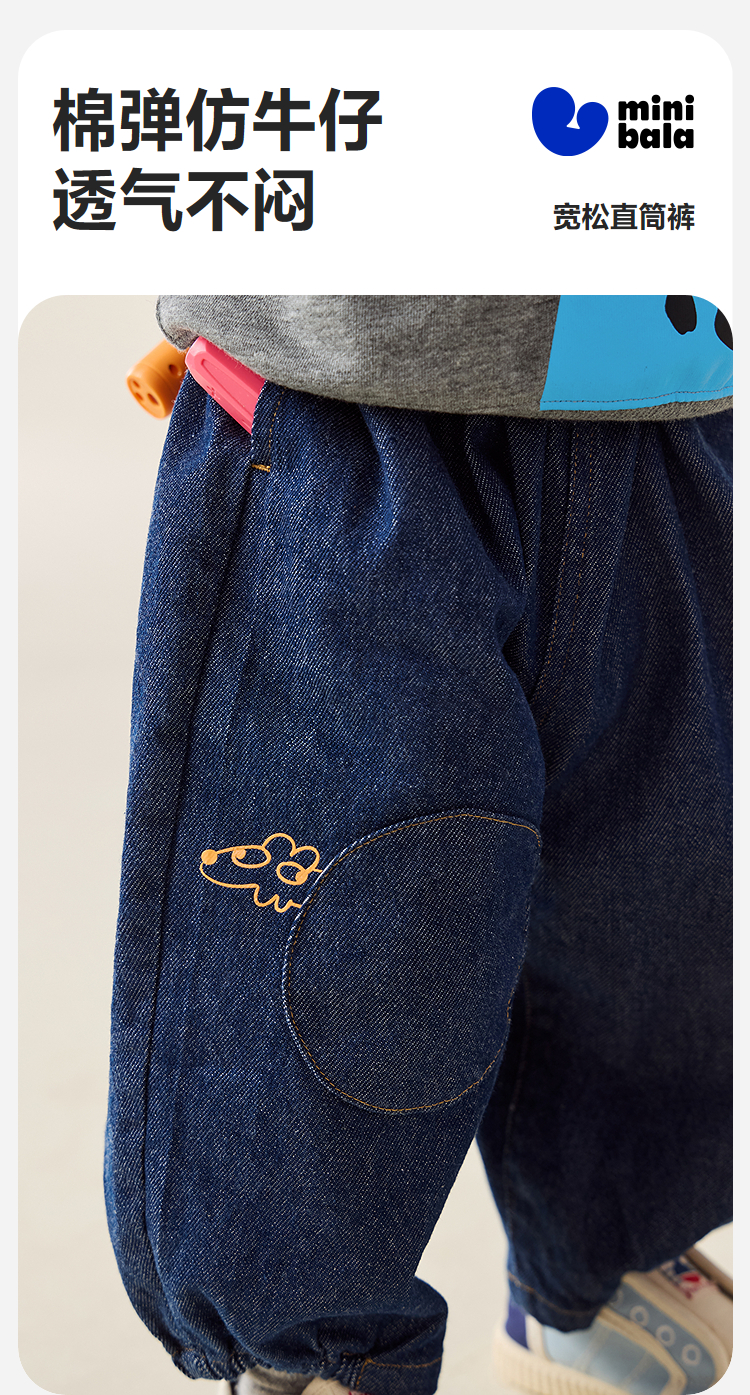 【仿牛仔】迷你巴拉男童女童裤子宝宝柔软透气宽松直筒裤长裤