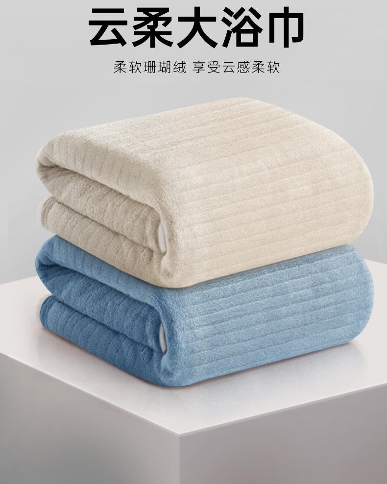 三利毛巾珊瑚绒浴巾成人洗澡浴巾加厚条纹浴巾裹澡巾情侣可穿浴巾