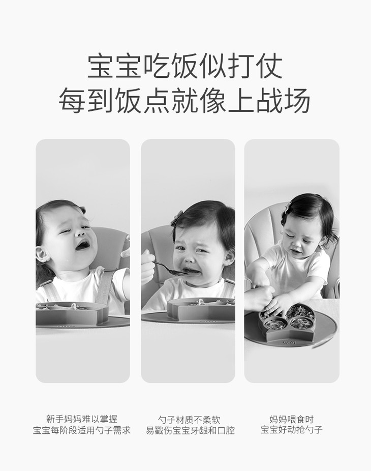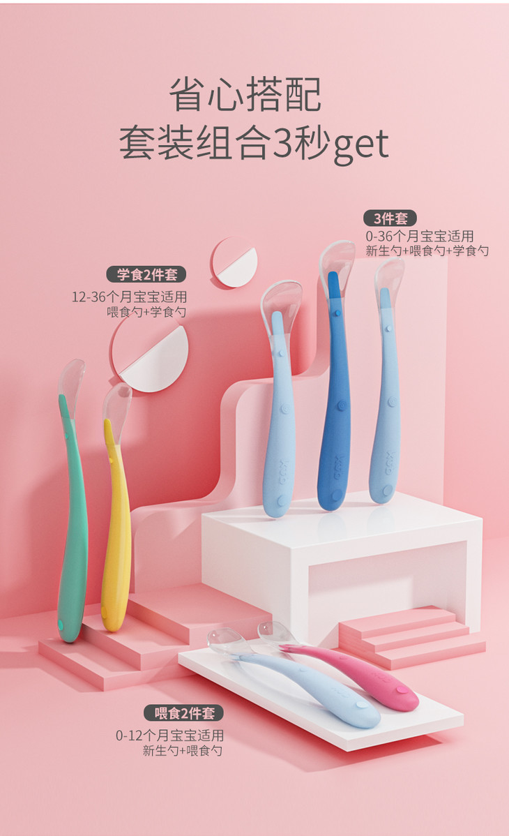 可优比婴儿勺子宝宝硅胶软勺新生儿学吃饭训练辅食勺儿童喂水碗勺