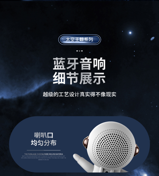 太空人炫酷造型设计,真有被惊艳到,在家用当摆件, 出门当挂件~都是颜值和音质双在线的一款便携蓝牙音响!! 送伴侣,送朋友,送同事,统统都要送, 这波完美礼物被你选到啦!也送自己一个, 奖励给如此有眼光有品位的你。