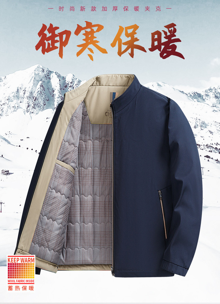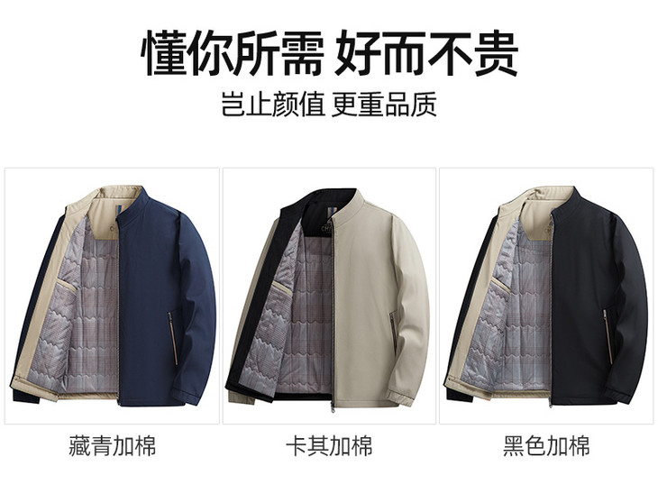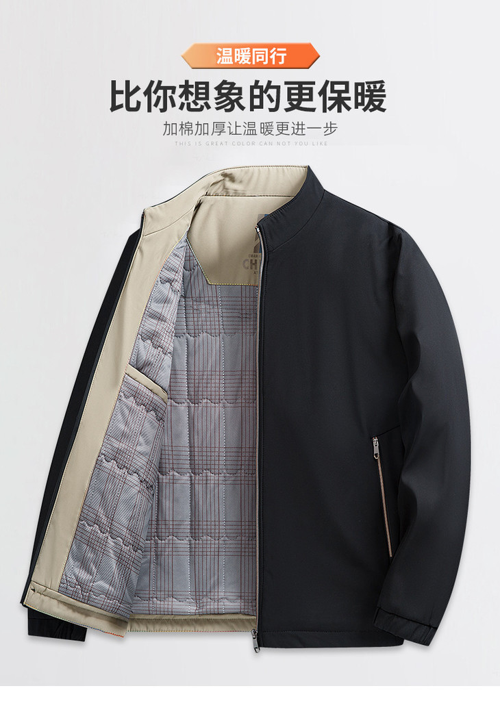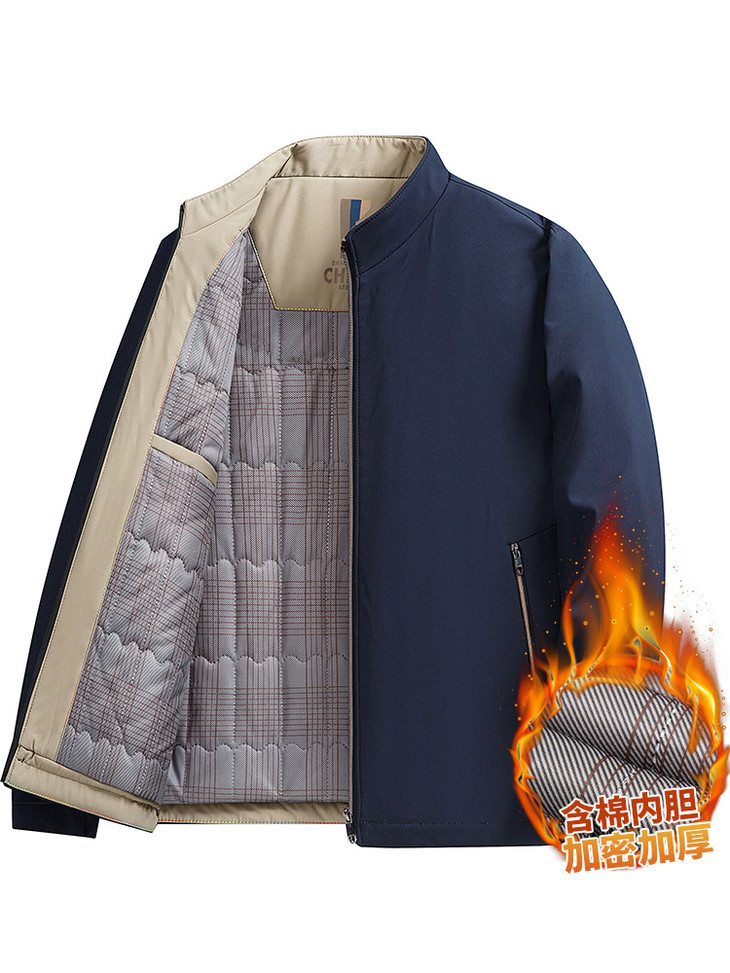 冬季加绒加厚商务休闲中年男士爸爸装夹克立领保暖棉服外套男