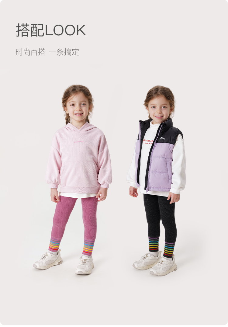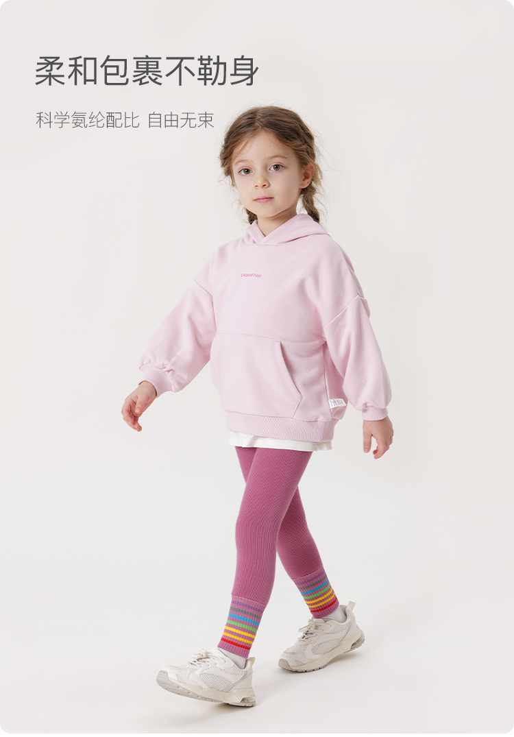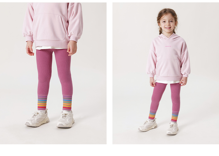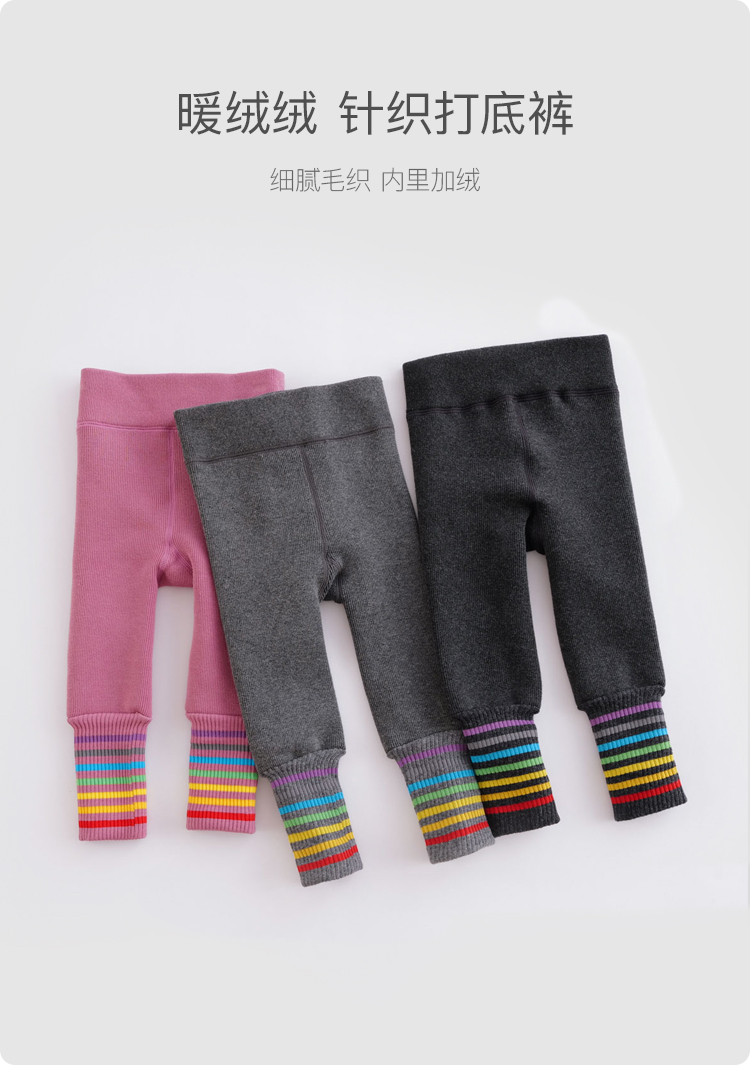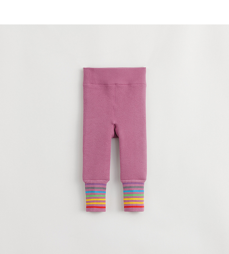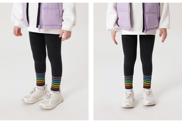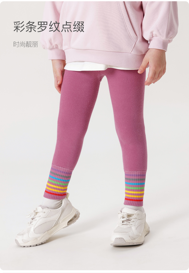 马克珍妮冬装新款 女童时尚彩虹条纹加绒保暖打底裤 232031