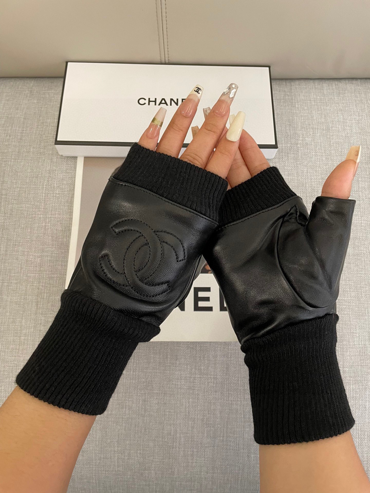 秋冬特惠💰220 香奈儿女士高档半指手套 选用进口羊皮 香奈儿御用羊皮 皮质光滑细腻柔软 手感一流认准进口羊皮特有手感 任何细节都不放过 码数: L