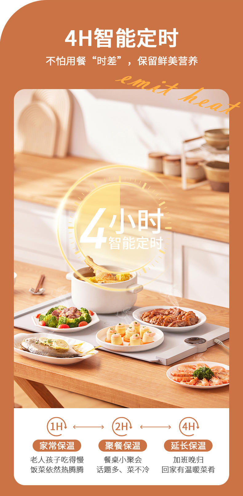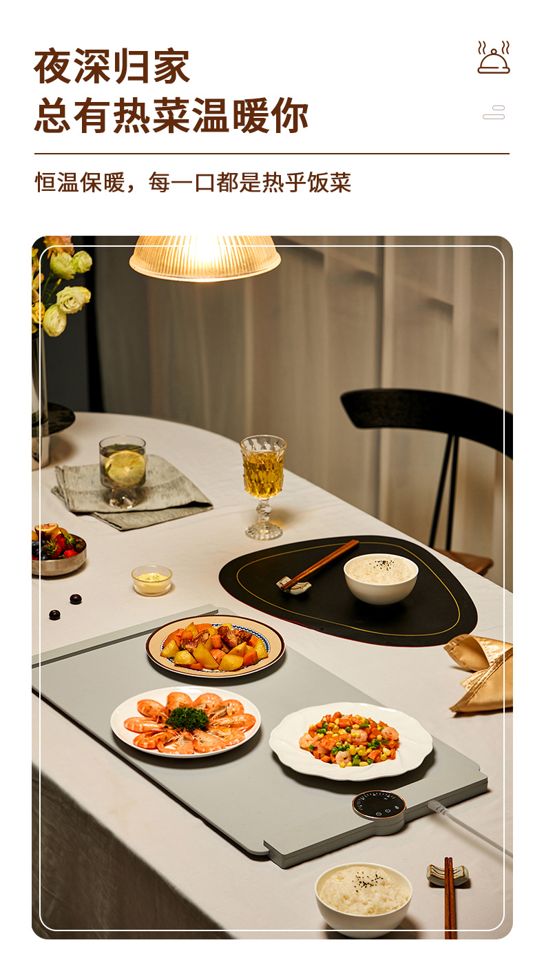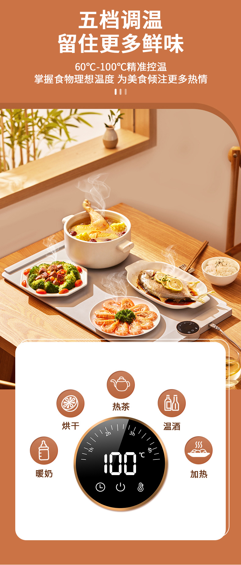 【可卷收纳,防滑防烫】生活元素暖菜板智能定时五档调温易清洗