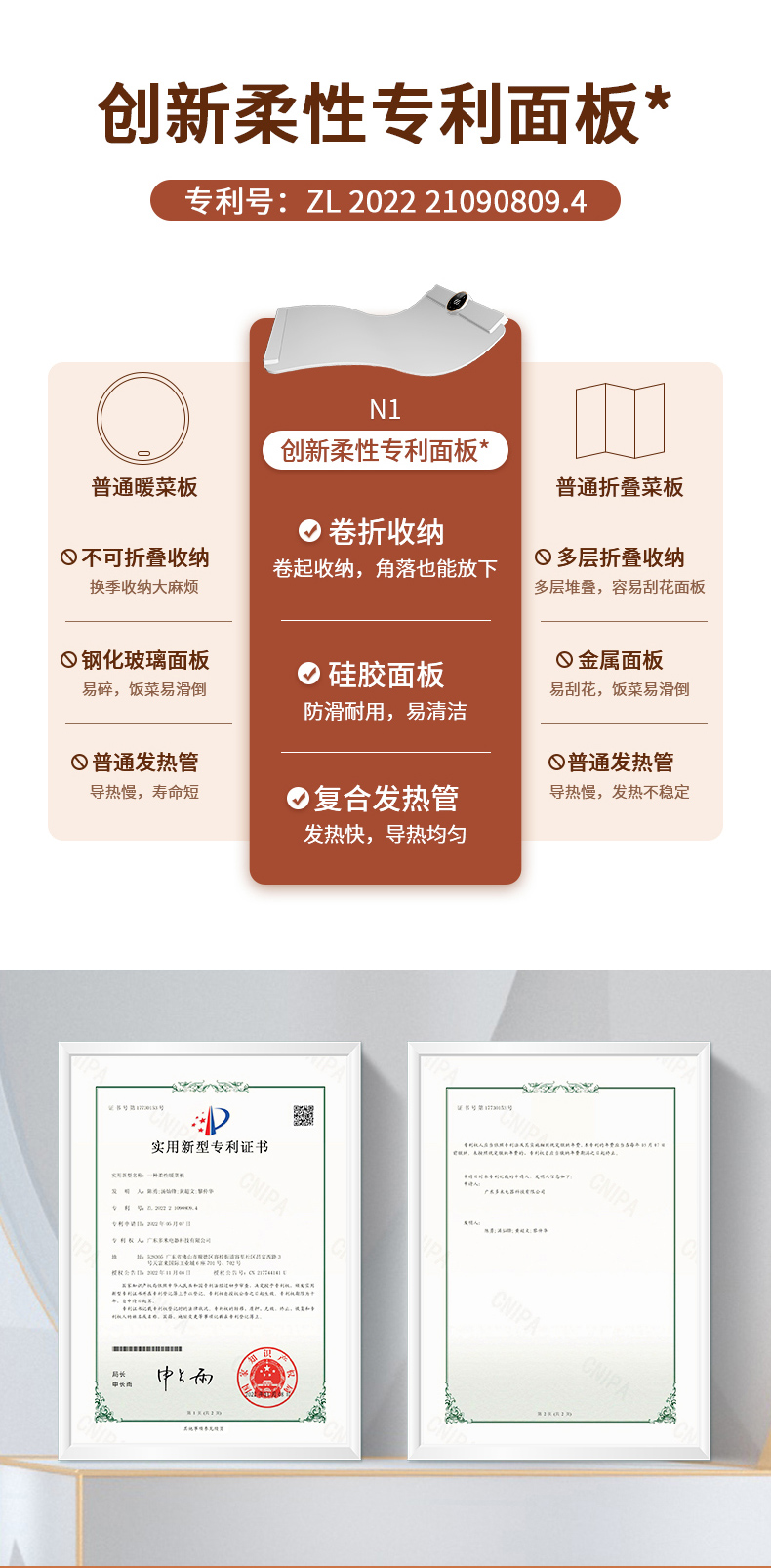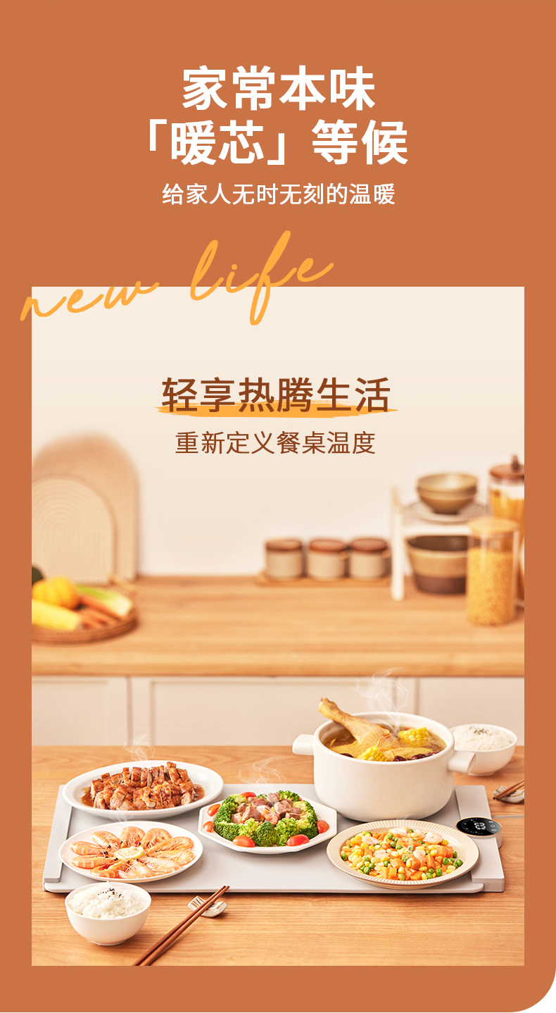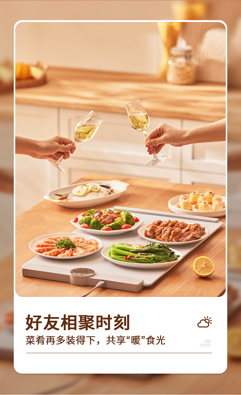 【可卷收纳,防滑防烫】生活元素暖菜板智能定时五档调温易清洗