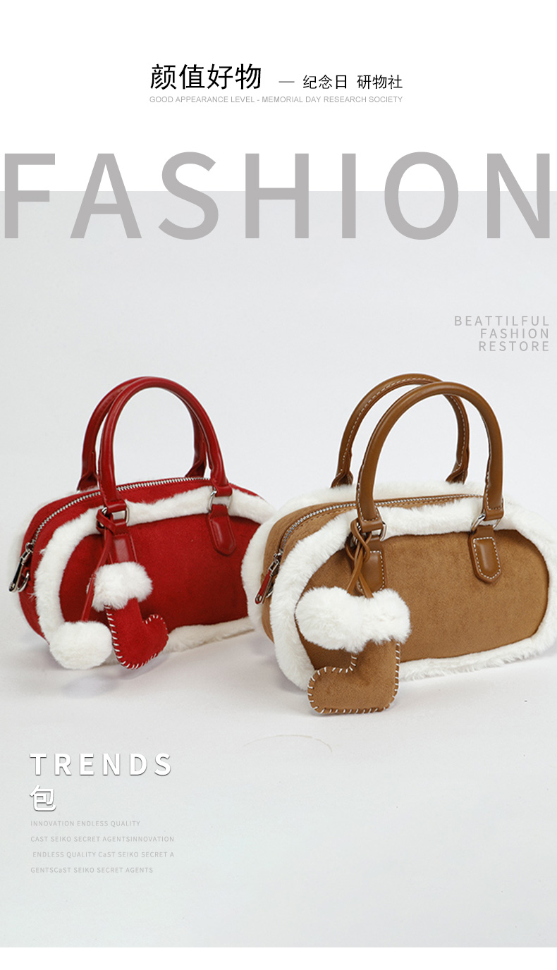 【礼物季】毛圈拼接波士顿手提包-纪念日百货门店同款167493169