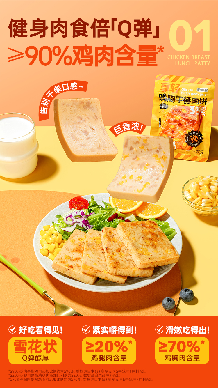 【69选15】【3袋】享轻™鸡胸午餐肉饼
