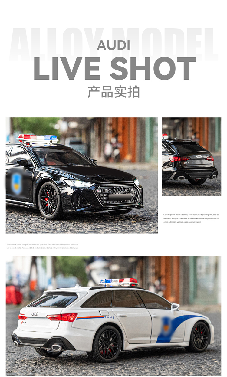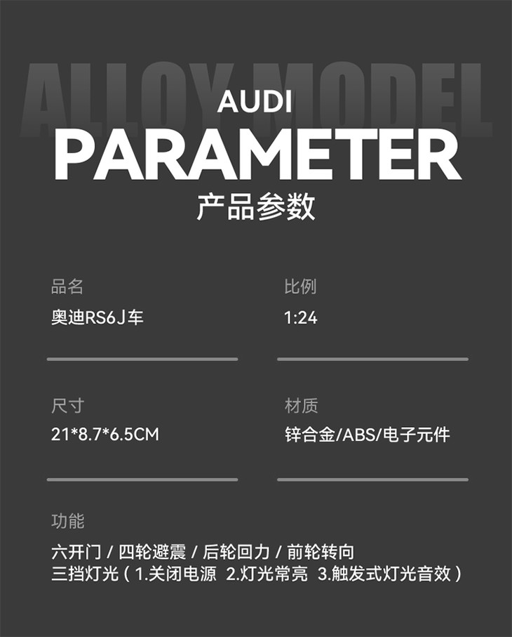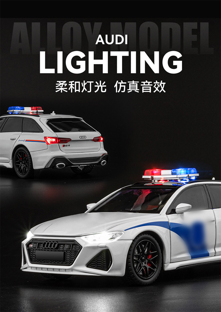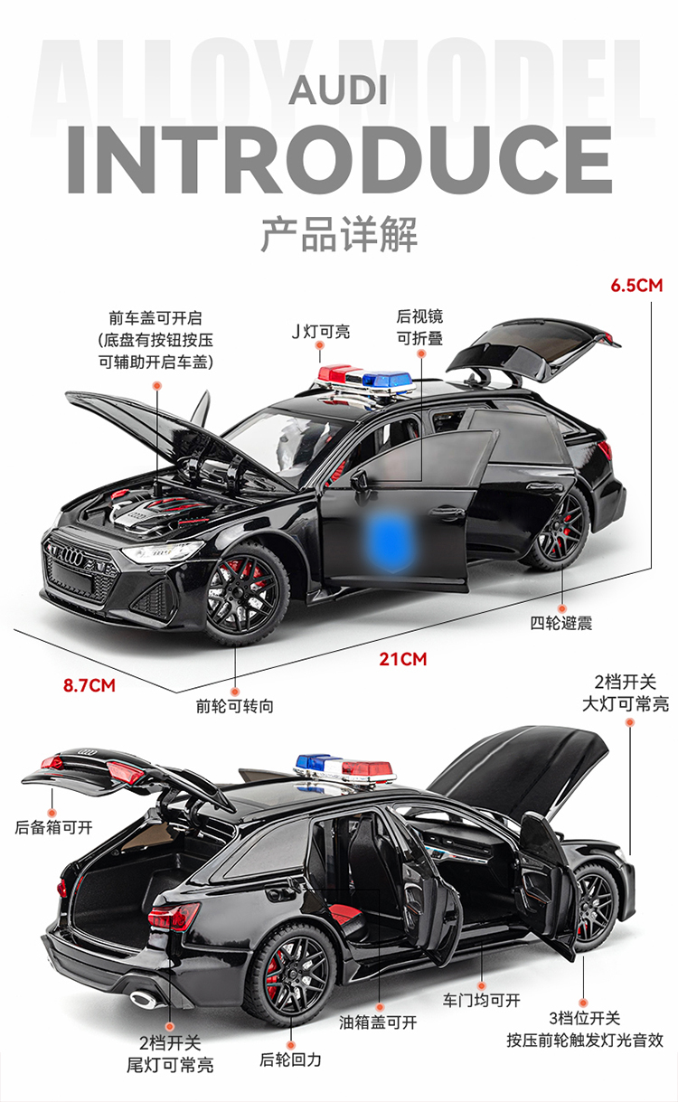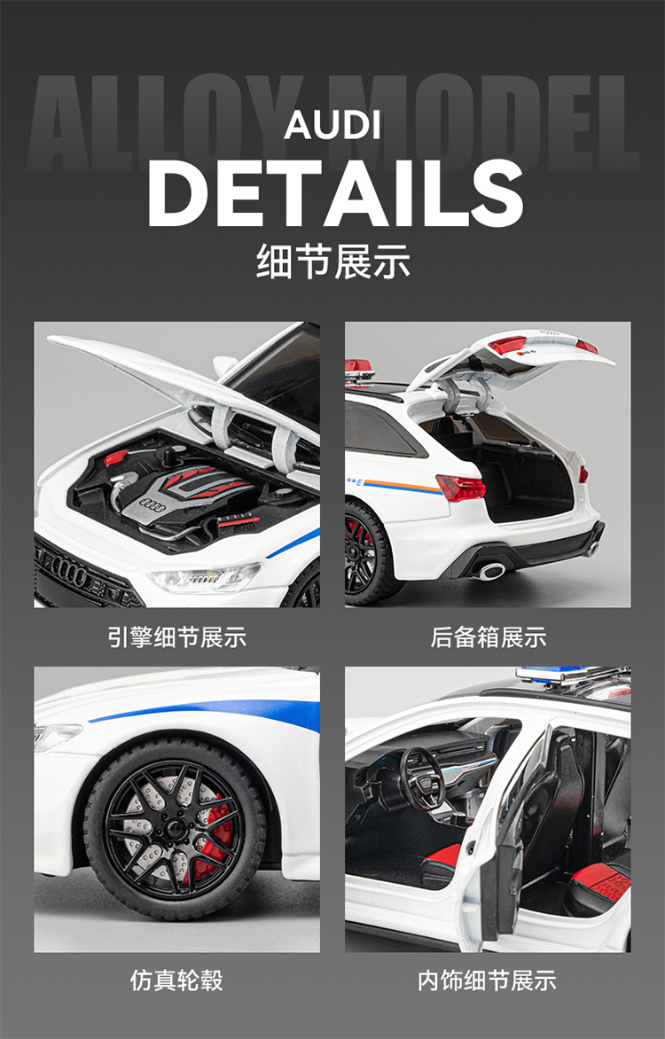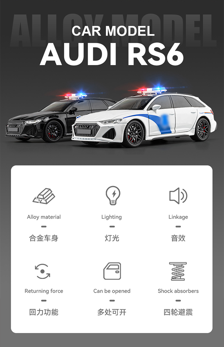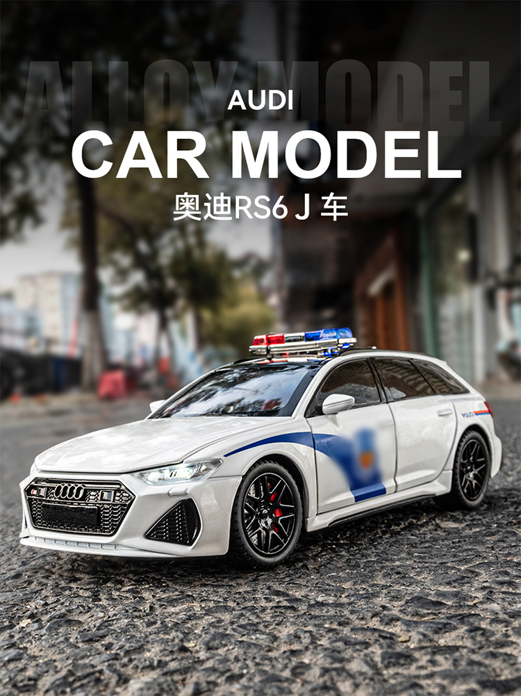 【1:24奥迪RS6J车】合金汽车模型摆件儿童玩具车送礼仿真车模