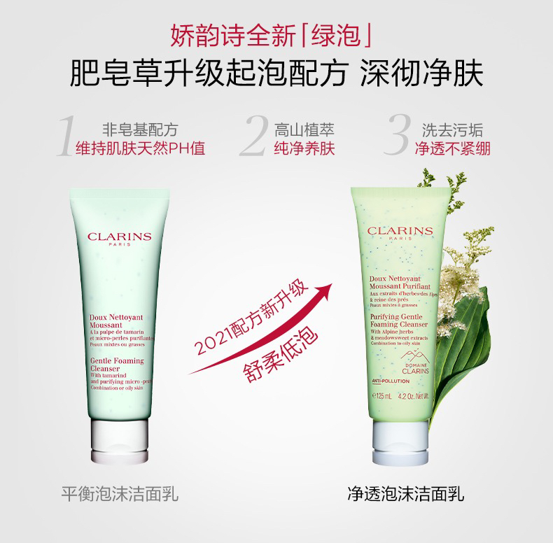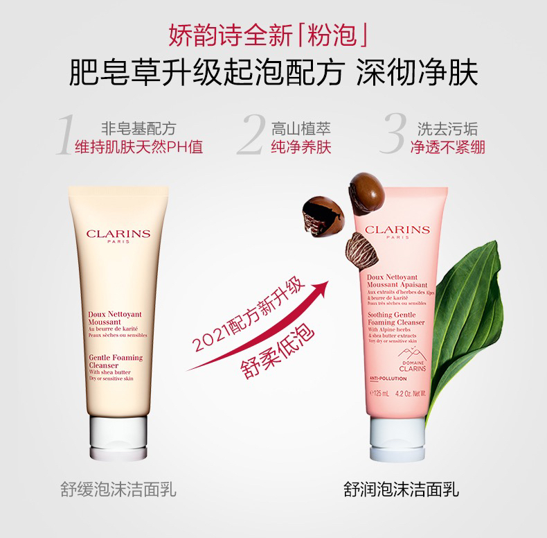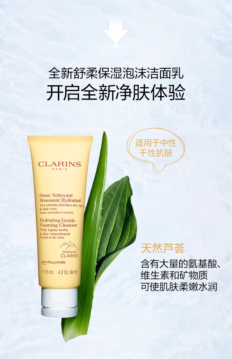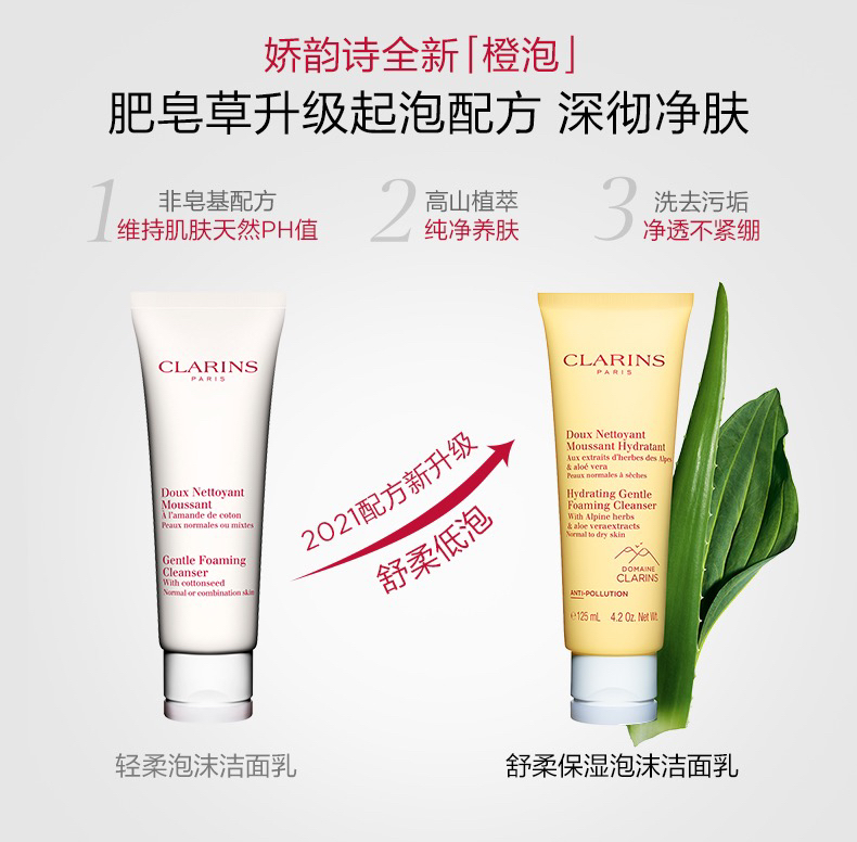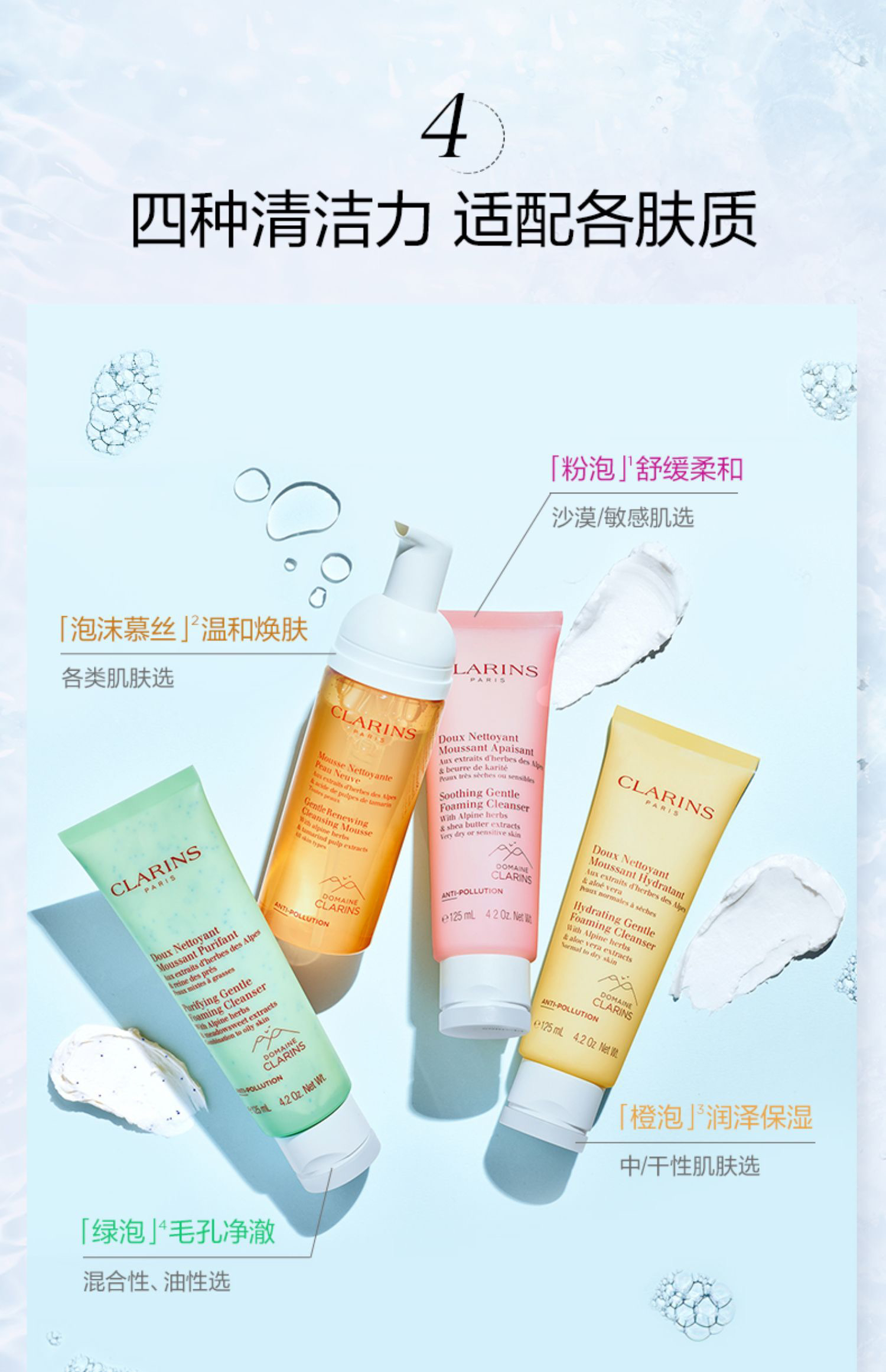 【孕妇可用】法国 Clarins娇韵诗 棉花籽温和保湿泡沫洗面奶 125ml