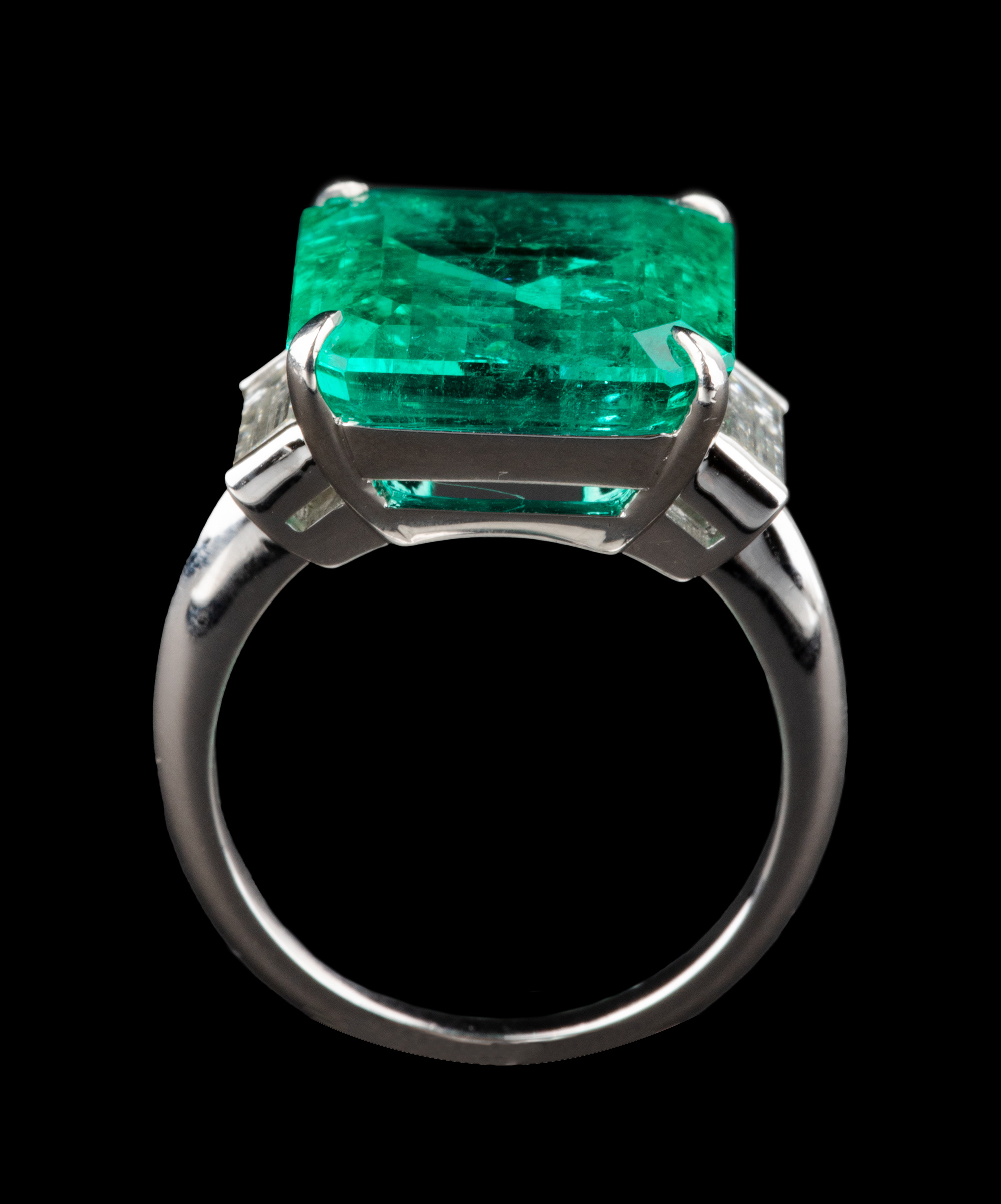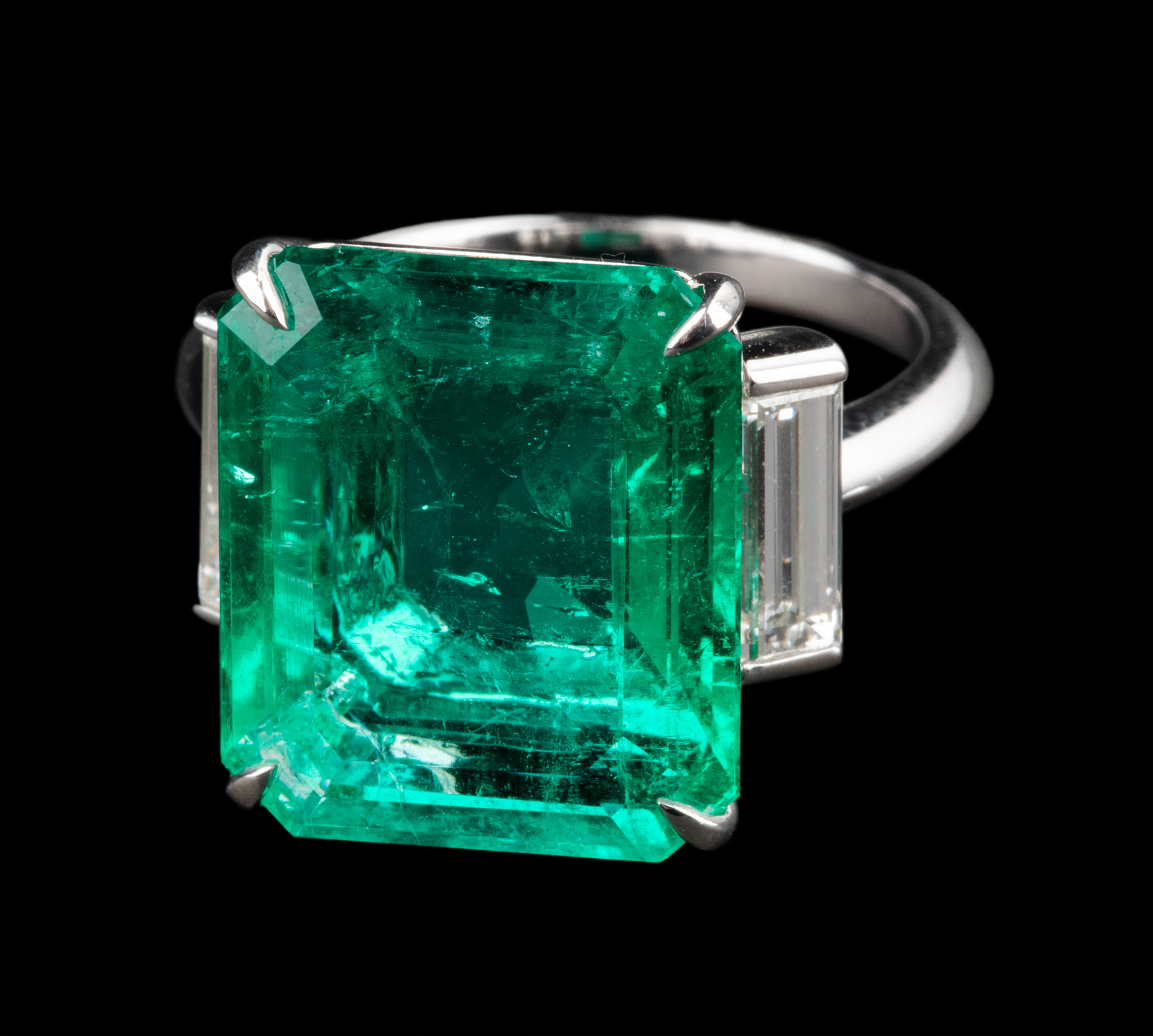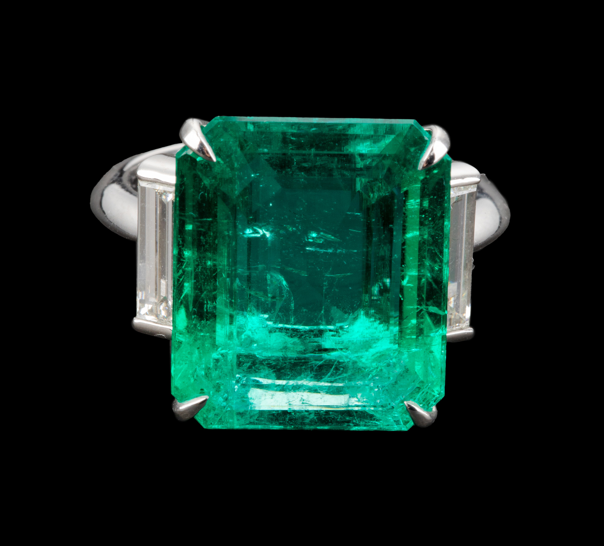 独角鹿西洋古董21世纪法国出品几何造型铂金镶嵌哥伦比亚祖母绿及钻石戒指