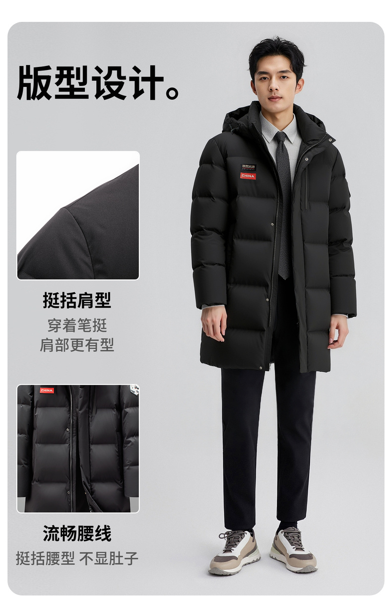 【含鸭绒】圣得西男士2025秋冬款时尚百搭连帽中长款易打理羽绒服