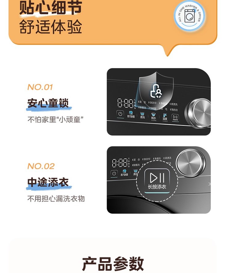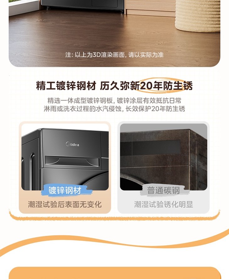 美的(252182)洗衣机 MG100V36T 滚筒洗衣机 金属钛 220V,1Ph 50Hz 转速1200