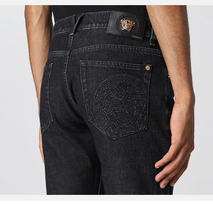 VERSACE 范思哲 男士棉质刺绣美杜莎修身牛仔裤 黑色 1006078 1A04334 1D040