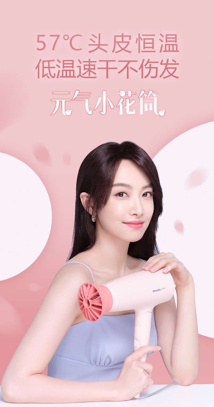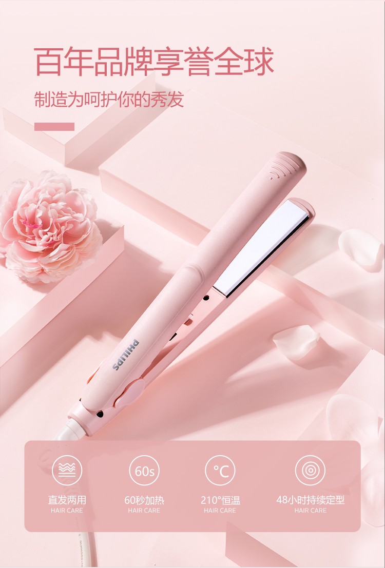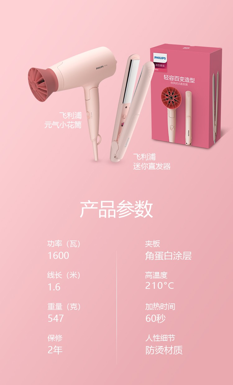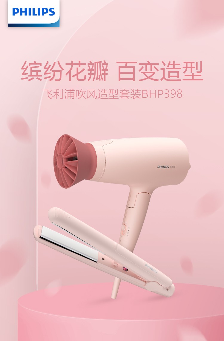 飞利浦 吹风造型套装 负离子小花筒电吹风+卷直两用 直发器 商品型号:BHP398/05