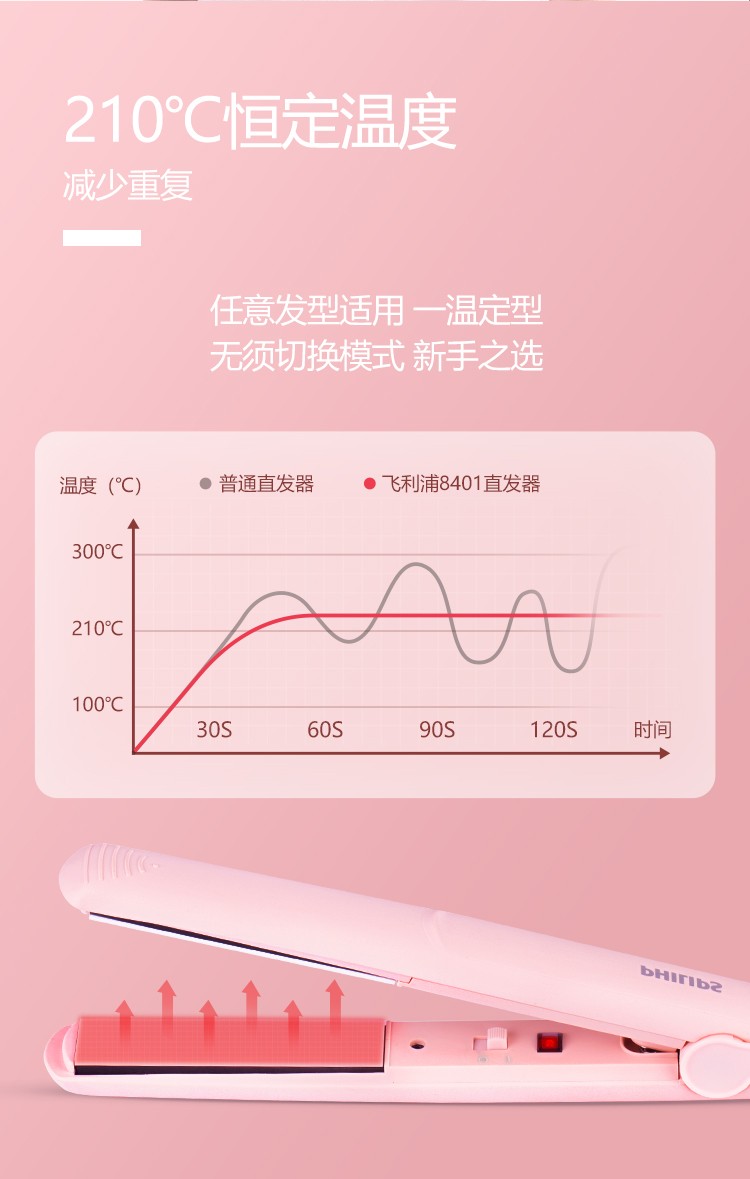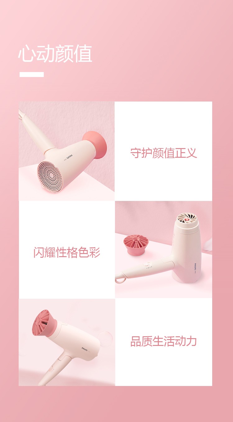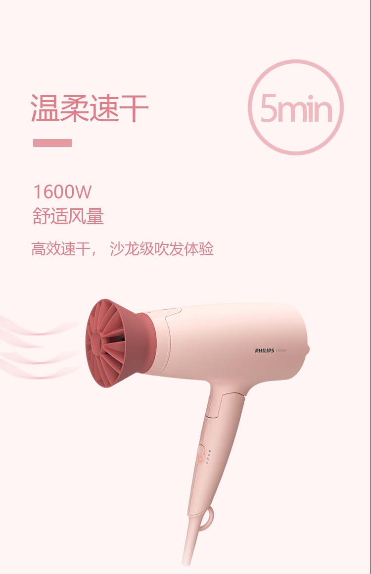 飞利浦 吹风造型套装 负离子小花筒电吹风+卷直两用 直发器 商品型号:BHP398/05